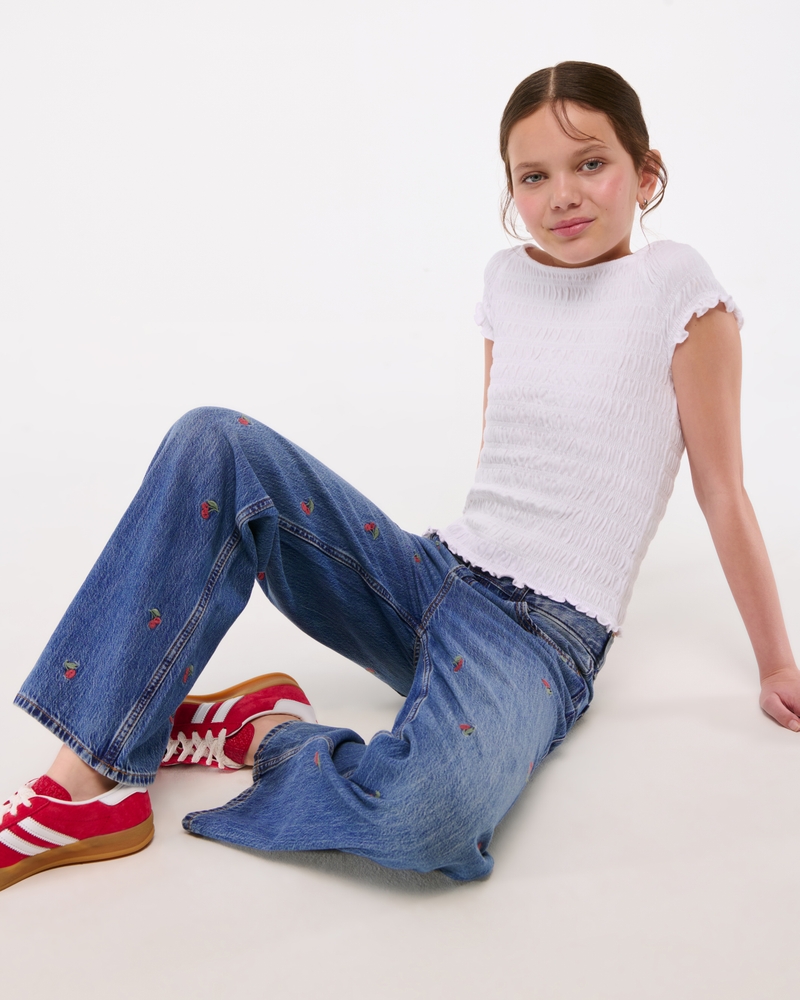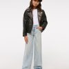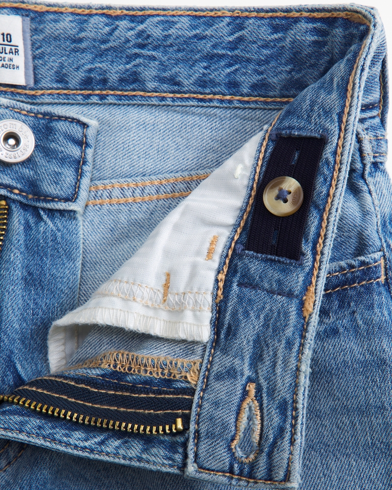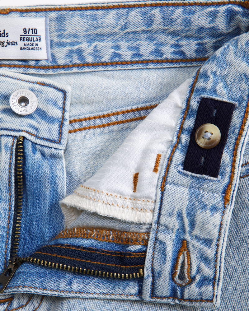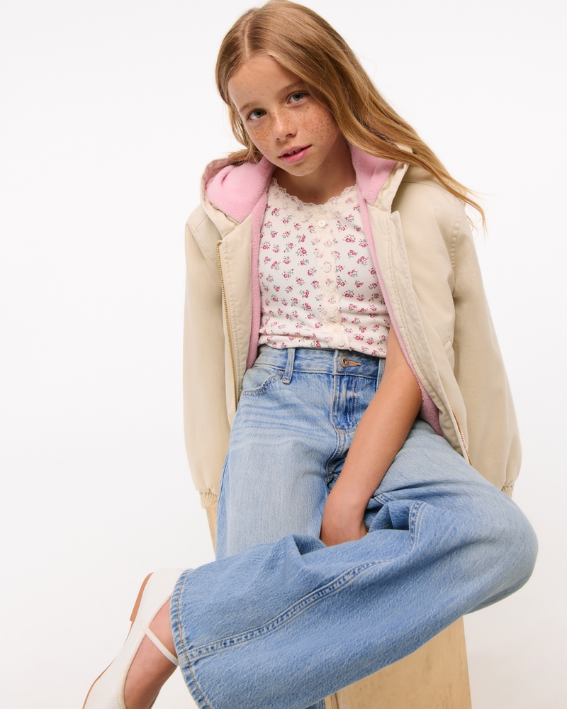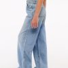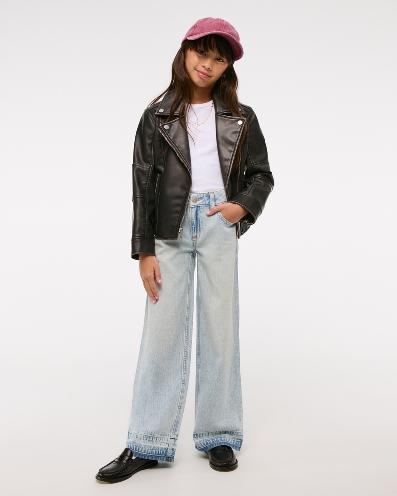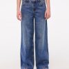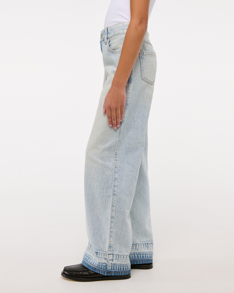 Our new high rise jeans in our comfortable lightweight denim and ultra wide-leg silhouette, with a full-length leg, light wash, functional pockets and waistband adjusters in all sizes. Imported.