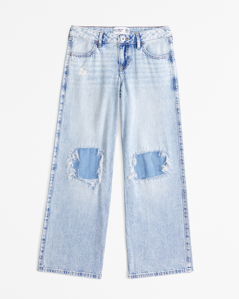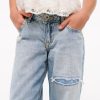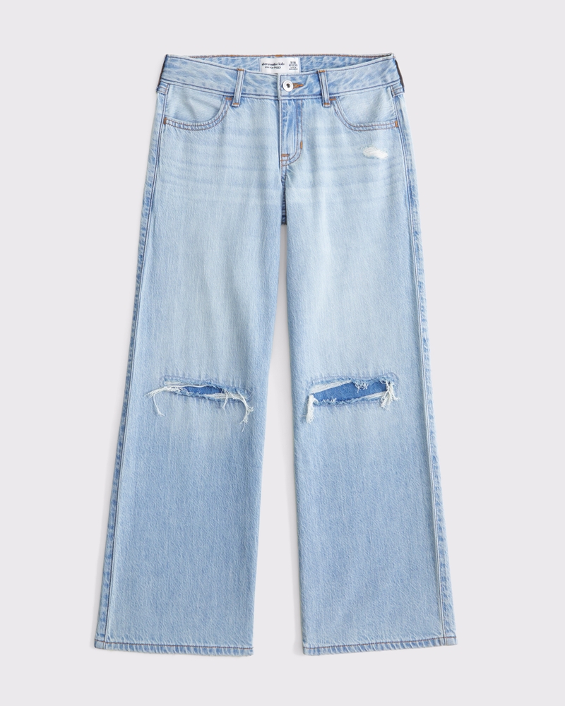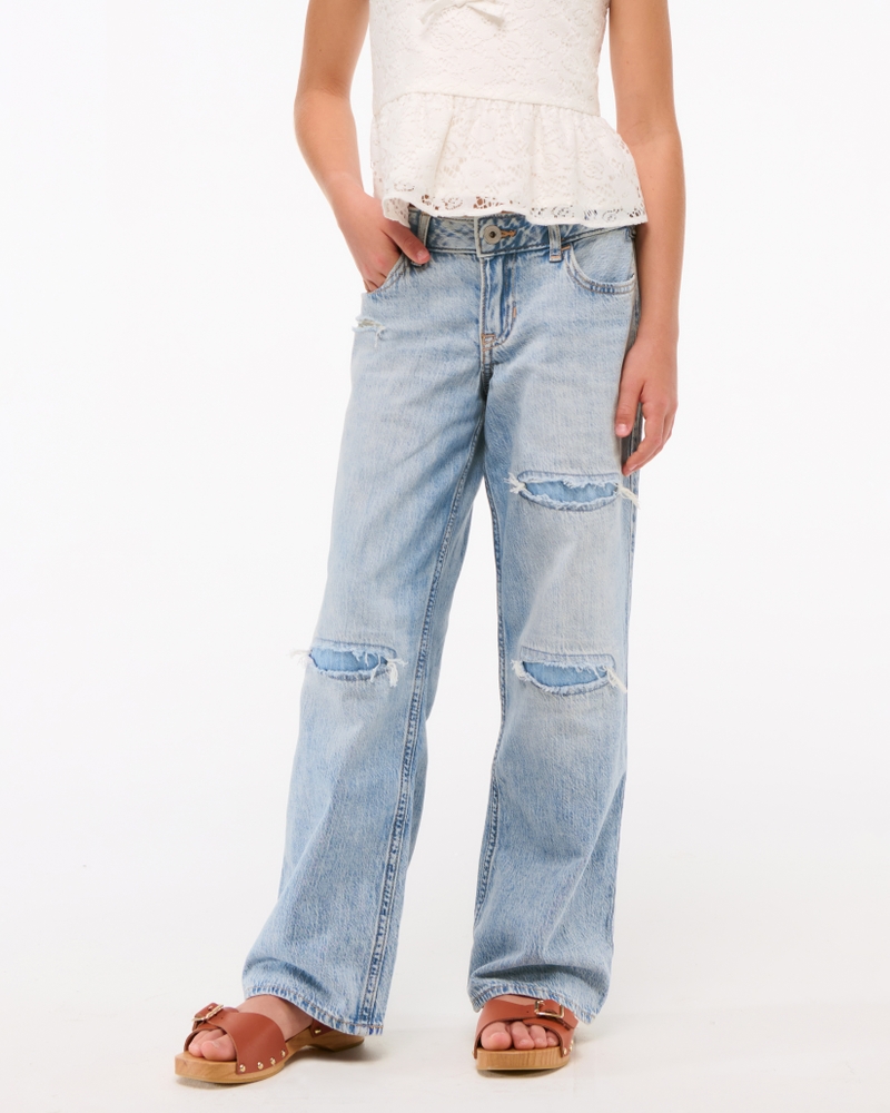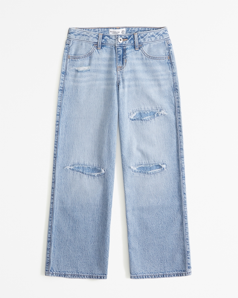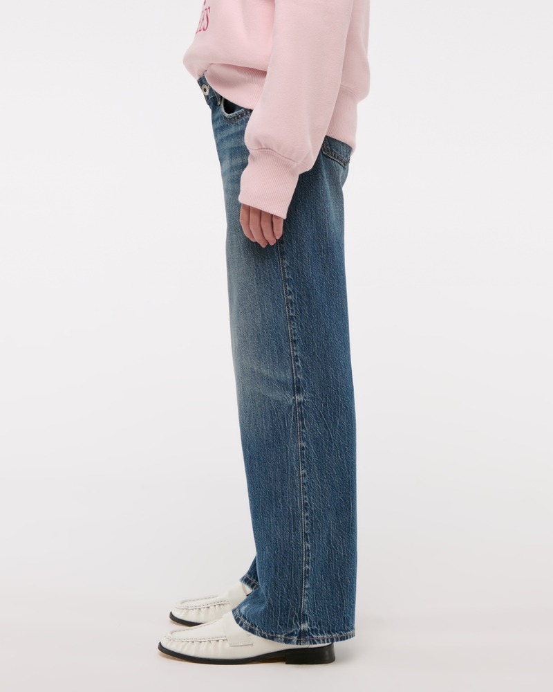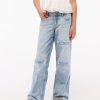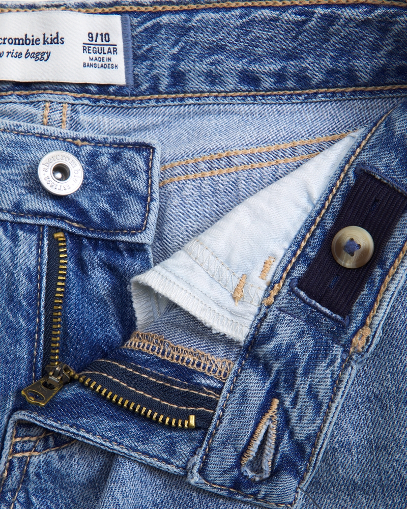 Our new lightweight low rise baggy fit jeans, that gives a relaxed fit through the leg with straight leg opening, in a light wash, with on-trend seaming details, functional pockets and waistband adjusters in all sizes. Imported.