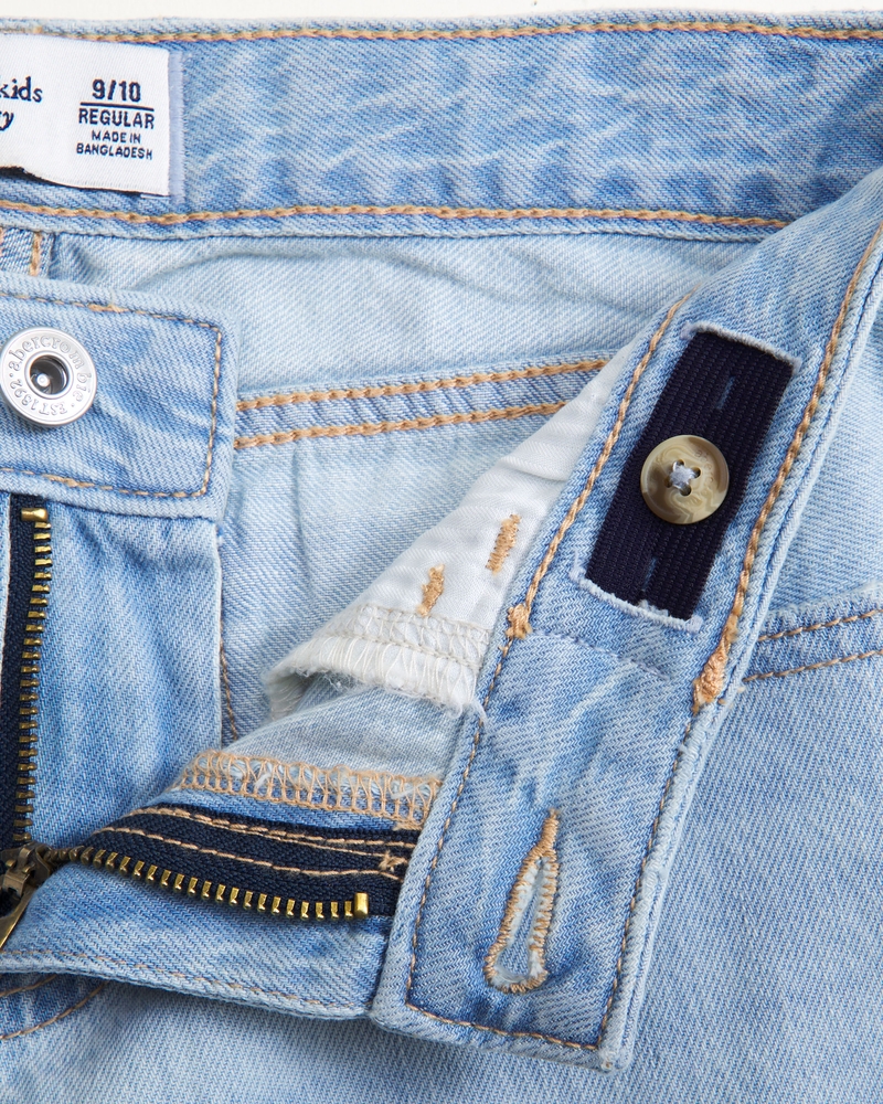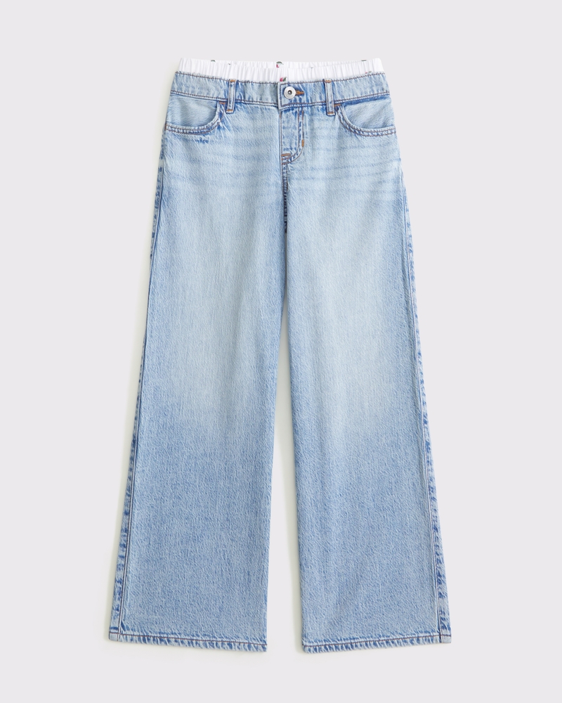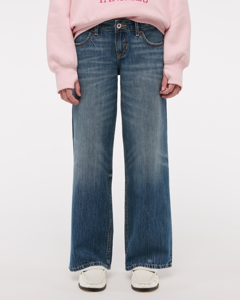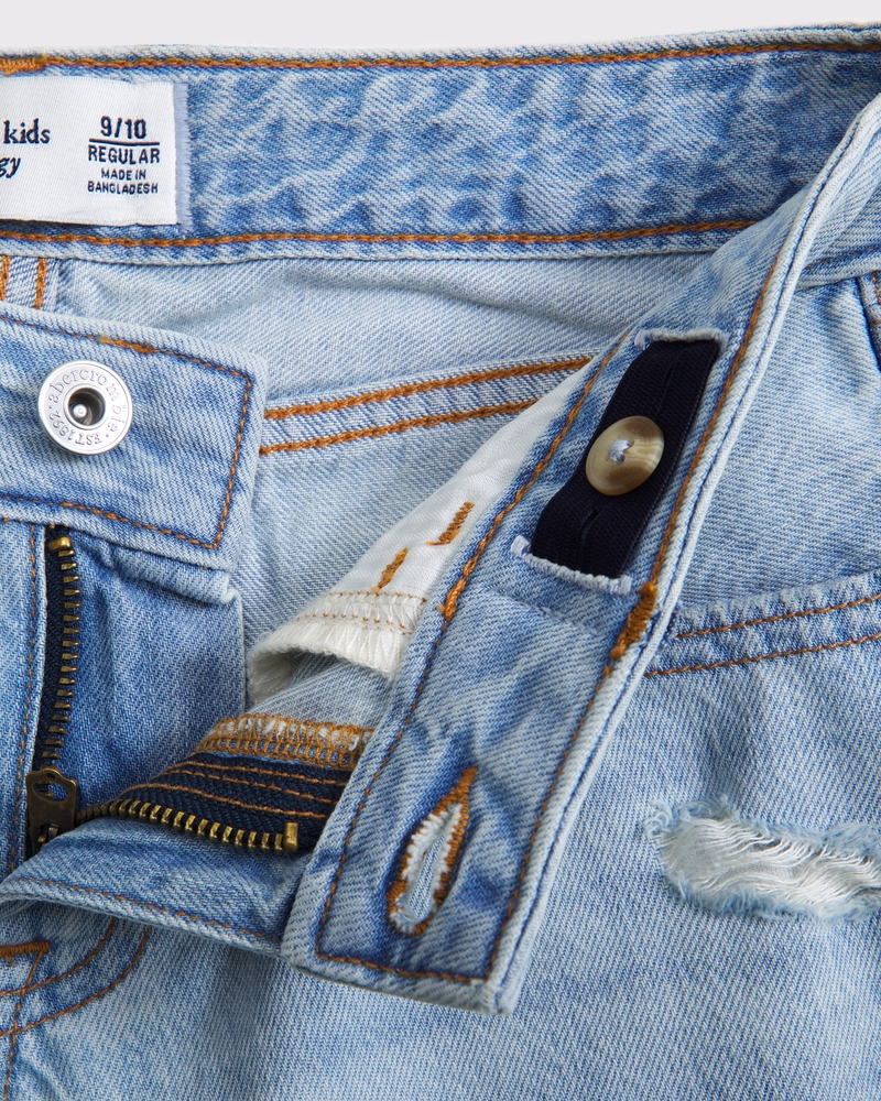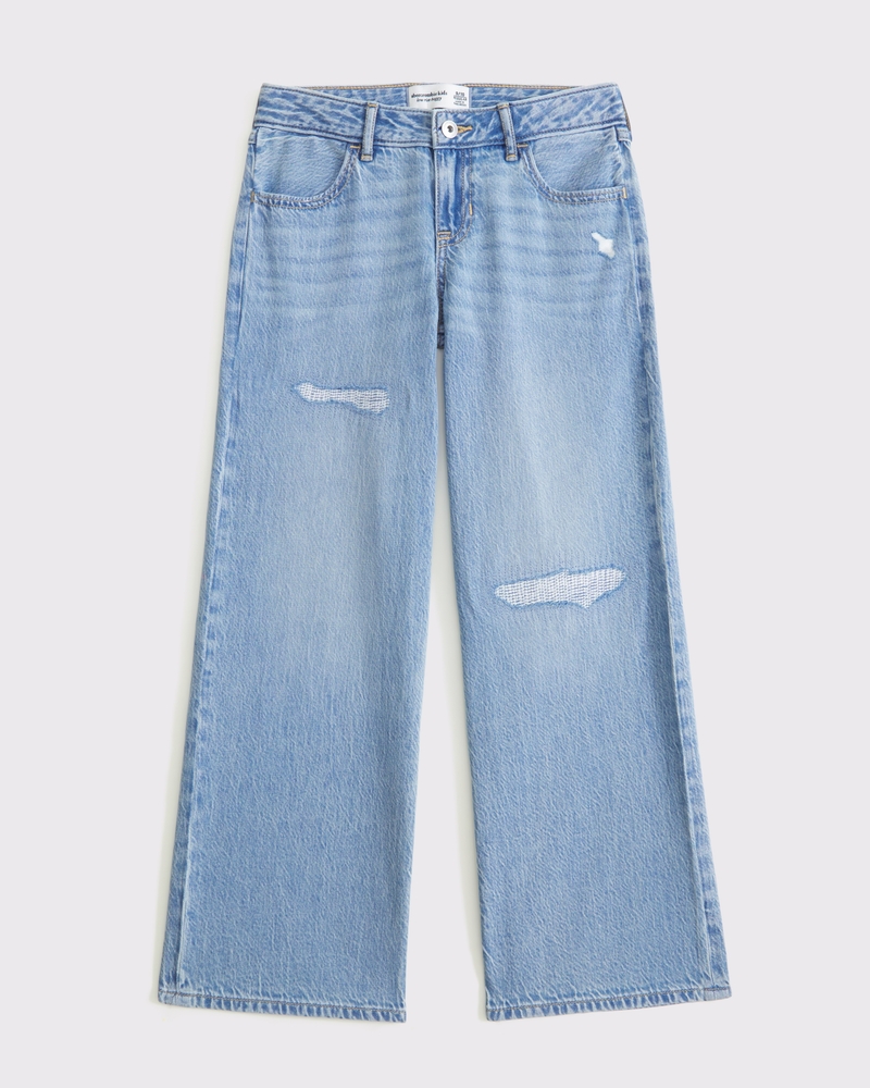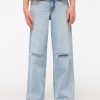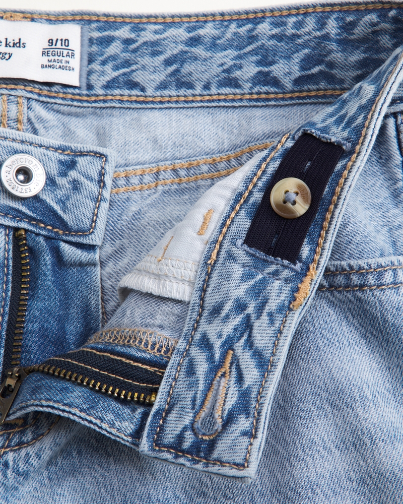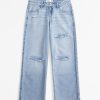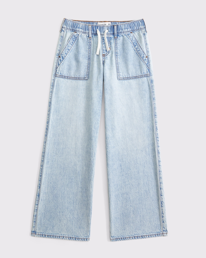 Our new lightweight low rise baggy fit jeans, that gives a relaxed fit through the leg with straight leg opening, in a light wash, with on-trend seaming details, functional pockets and waistband adjusters in all sizes. Imported.
