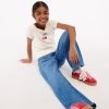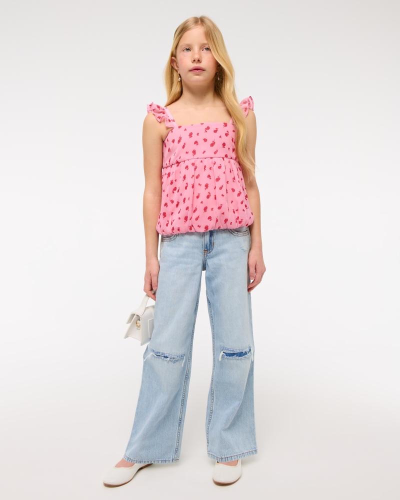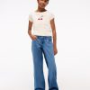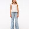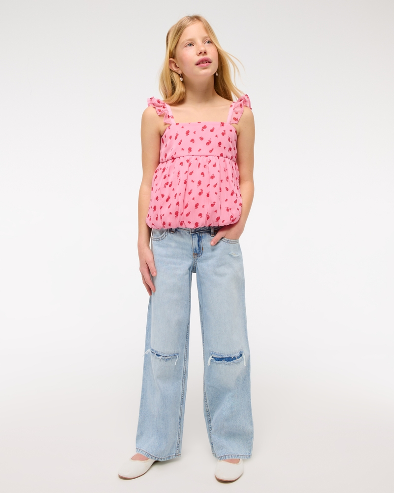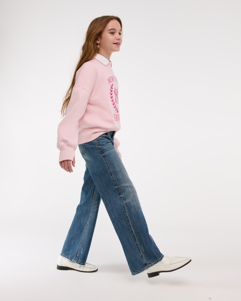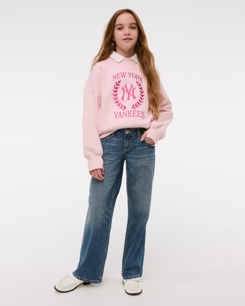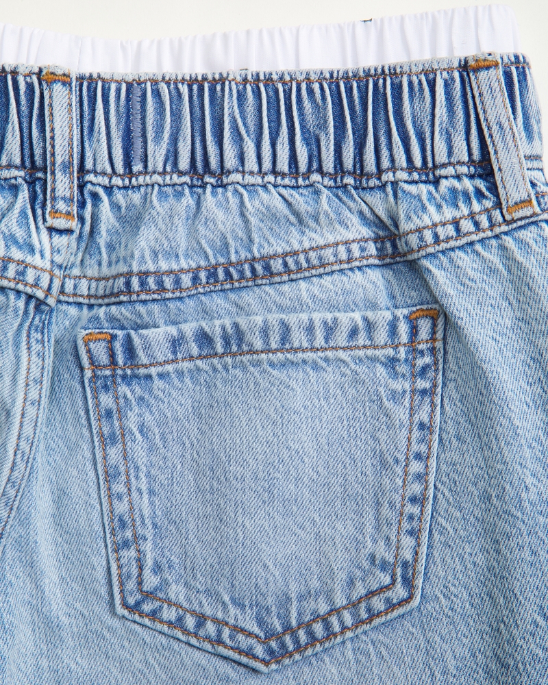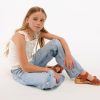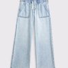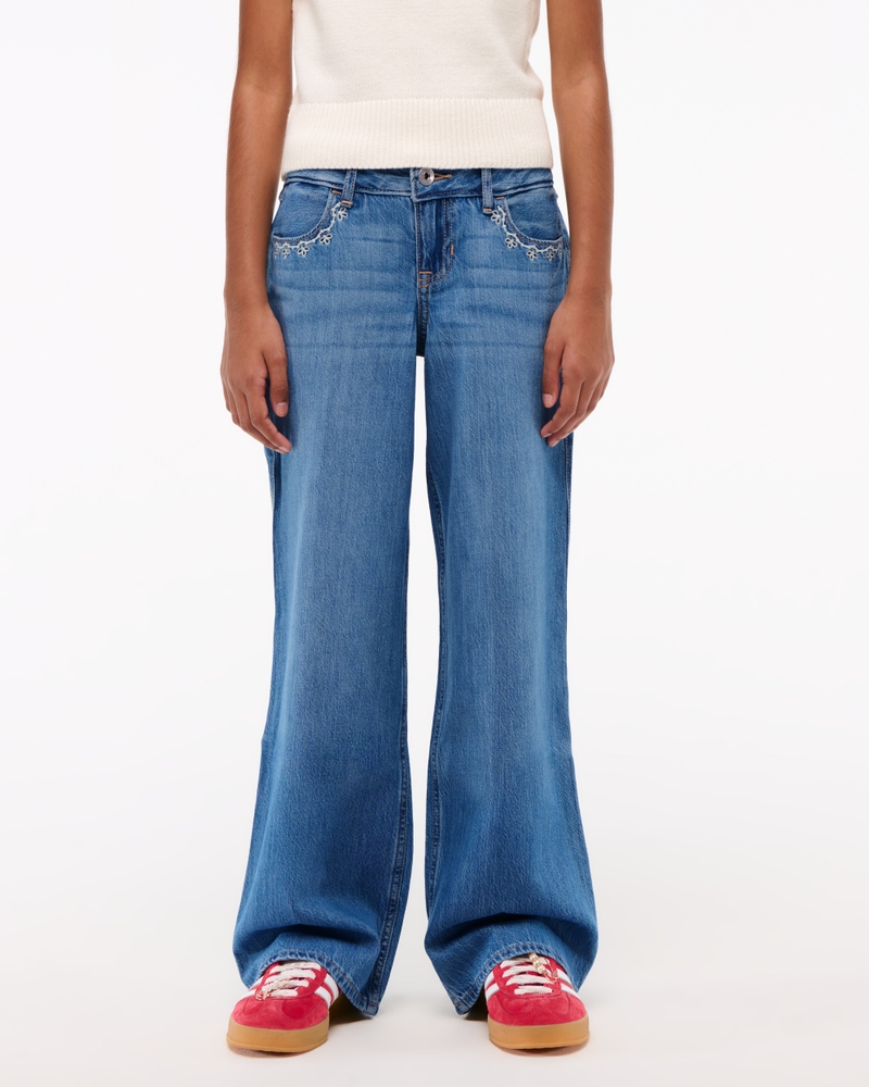 Our new lightweight low rise baggy fit jeans, that gives a relaxed fit through the leg with straight leg opening, in a light wash, with on-trend seaming details, functional pockets and waistband adjusters in all sizes. Imported.