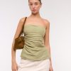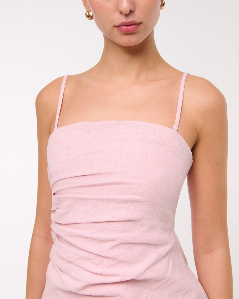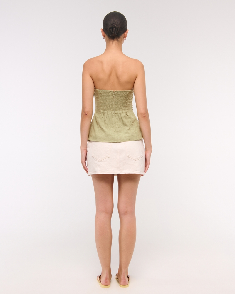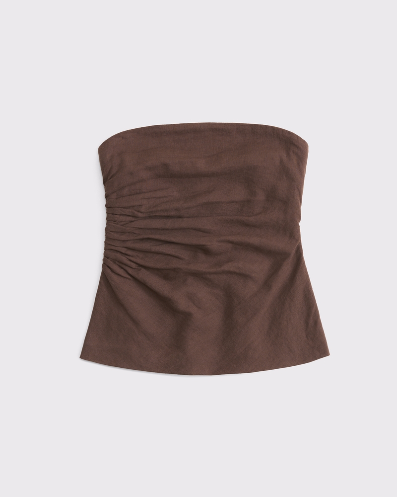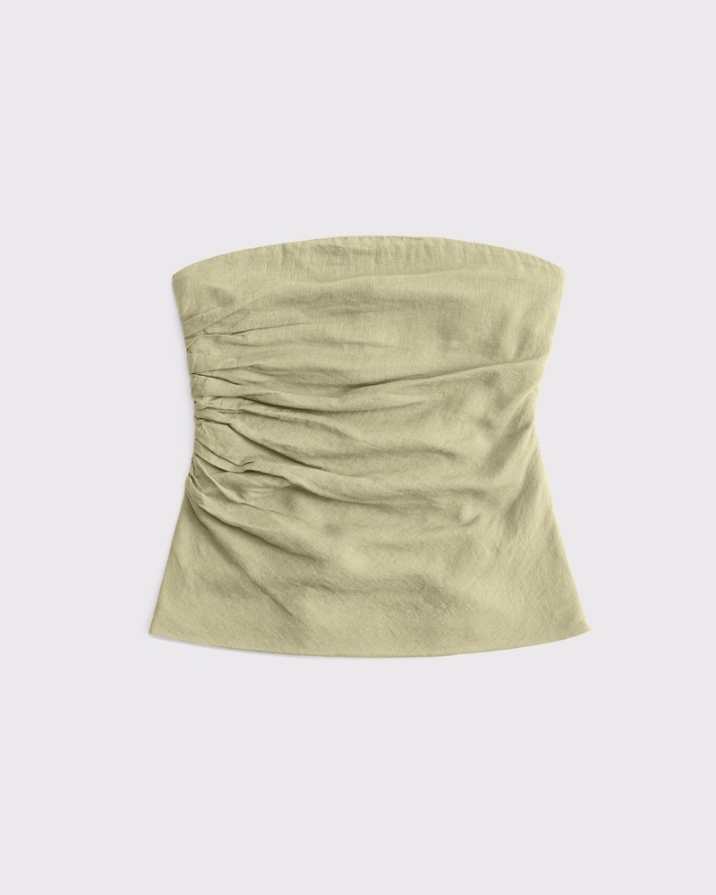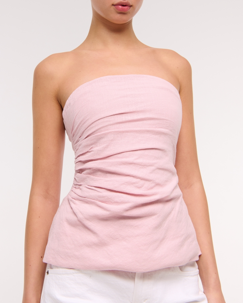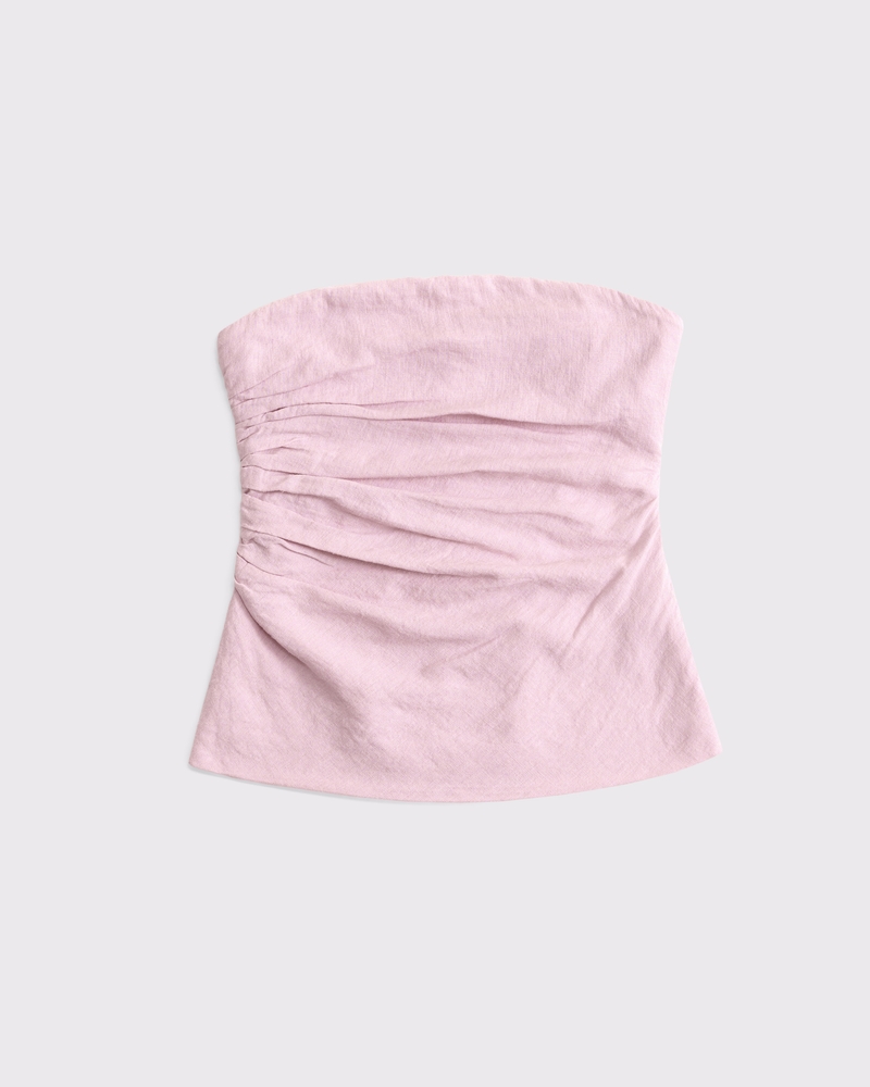 Slim-fitting strapless tube top in our soft linen-blend fabric, with flattering side ruching details and adjustable back smocking. Imported.