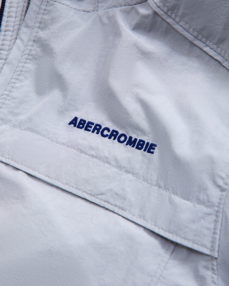 Our new lightweight windbreaker in a wind- and water-resistant nylon fabric, featuring logo detail at left chest, zip-up front, on-trend seaming details, side pockets, cozy interior lining and cinched cuffs and waistband. Imported.