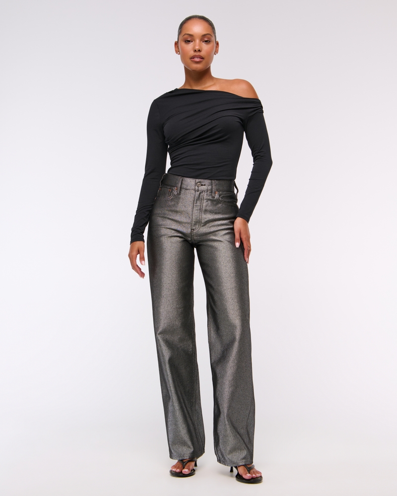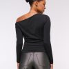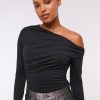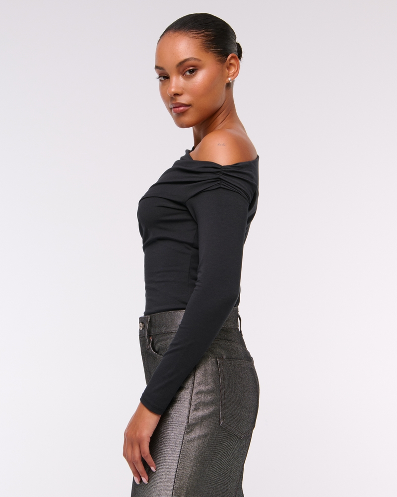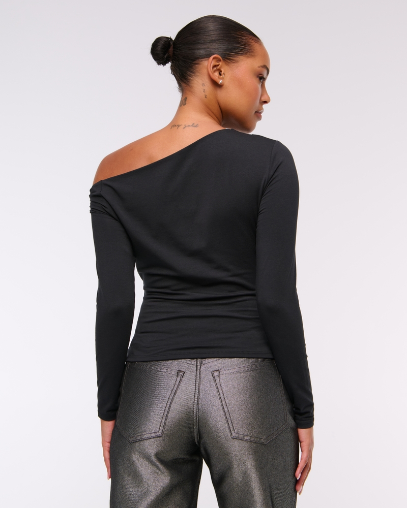 Slim-fitting long-sleeve top in our softAF cotton-modal fabric, featuring an asymmetrical neckline, ruching details along the bodice and draping detail on the shoulders. Imported.