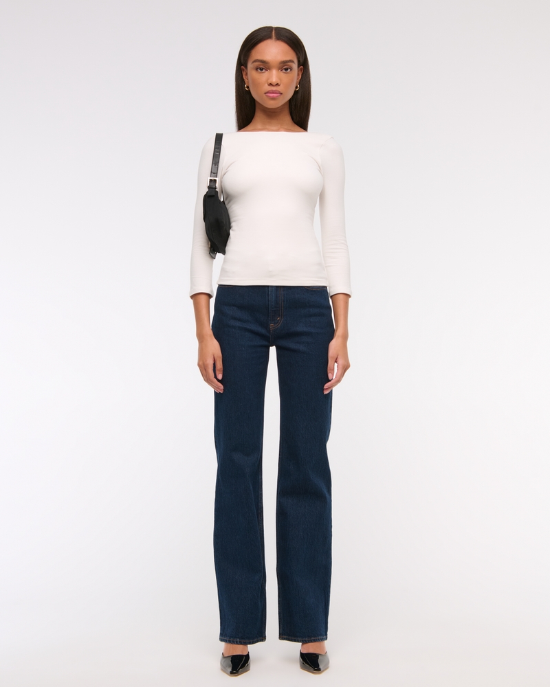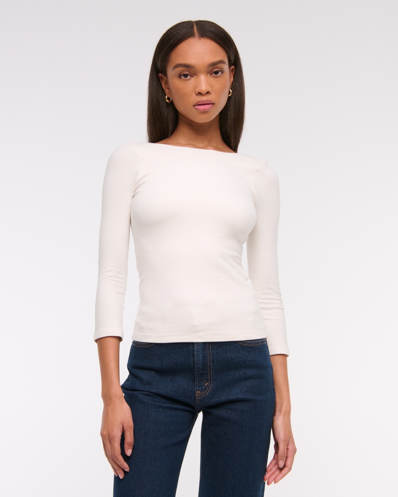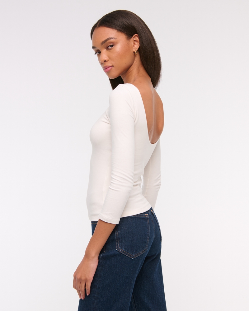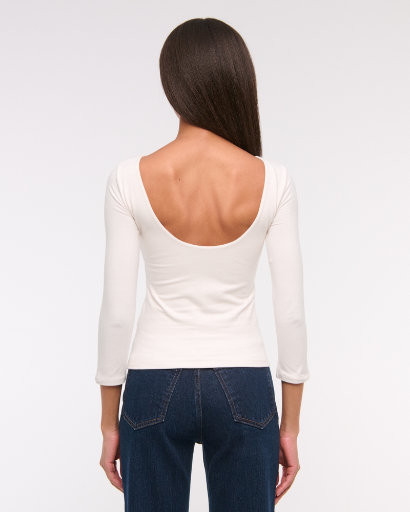 Slim-fitting long-sleeve top in our double-layered softAF cotton-blend seamless fabric, featuring open scoop-back detail and cropped sleeves. Our cotton-blend seamless fabric is an ultra soft, brushed jersey fabric, that gives you a casual seamless look! Imported.