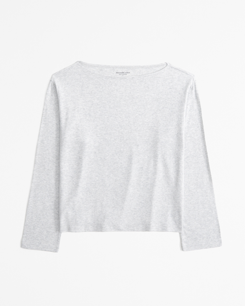 Slim-fitting long-sleeve tee in our soft cozy lounge knit fabric and tuckable length, featuring on-trend slash neckline and all-over texture detail. Imported.