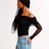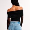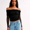 Long-Sleeve Off-The-Shoulder Mesh Top