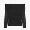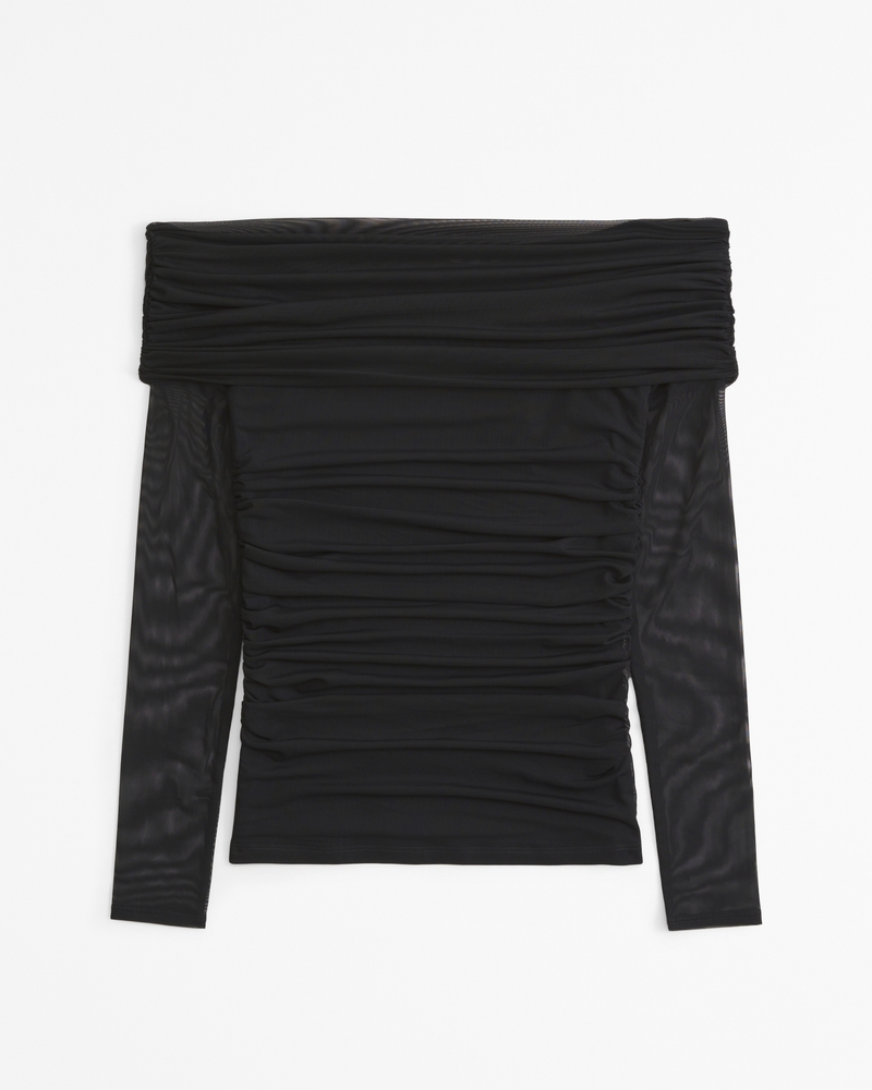 Slim-fitting long-sleeve top in our soft mesh fabric, with draped details along the bodice and off-the-shoulder detail. Imported.
