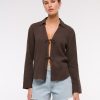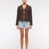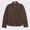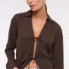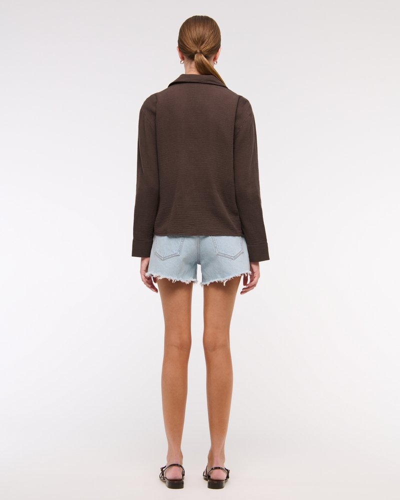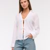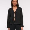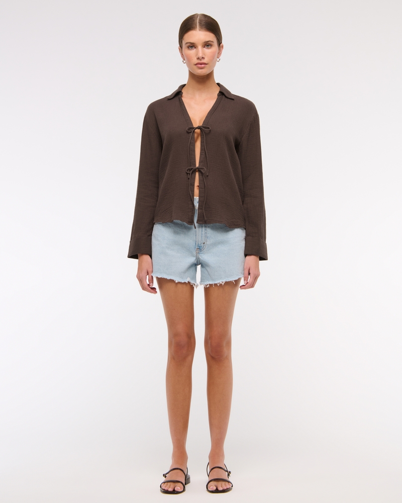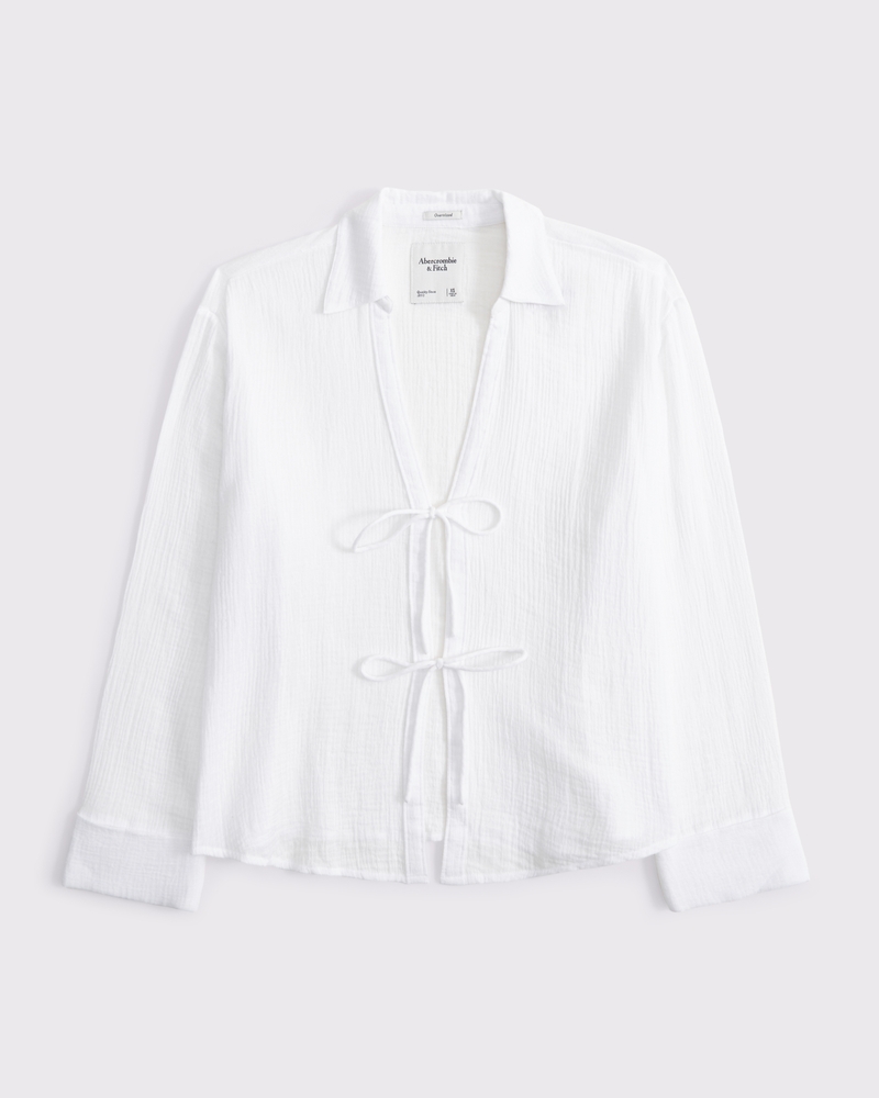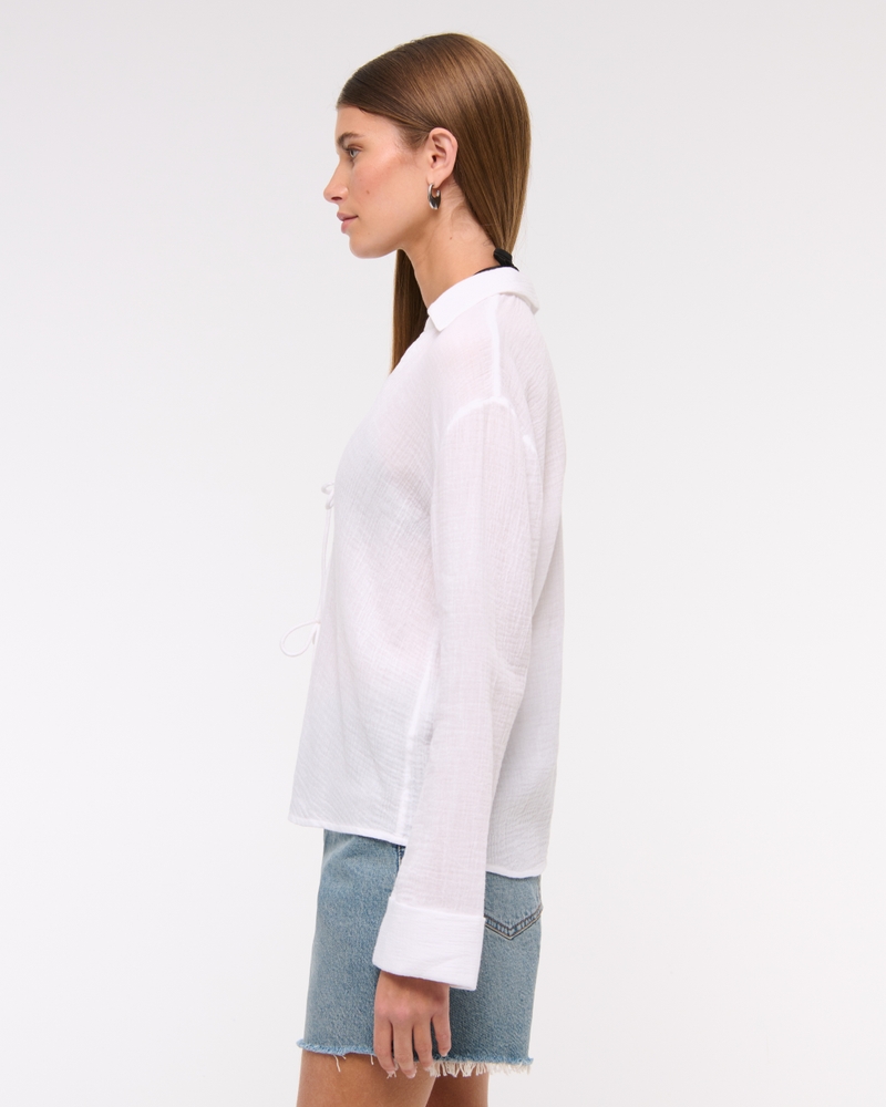 Long-Sleeve Oversized Tie-Front Gauzy Shirt