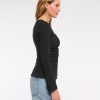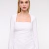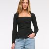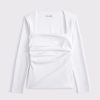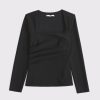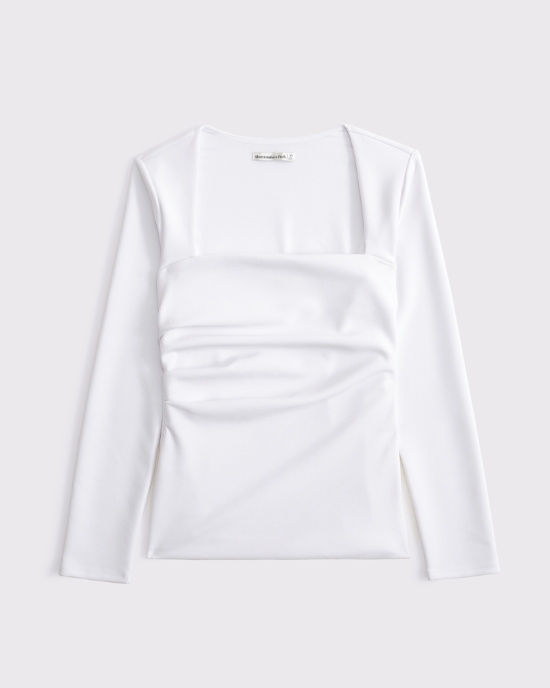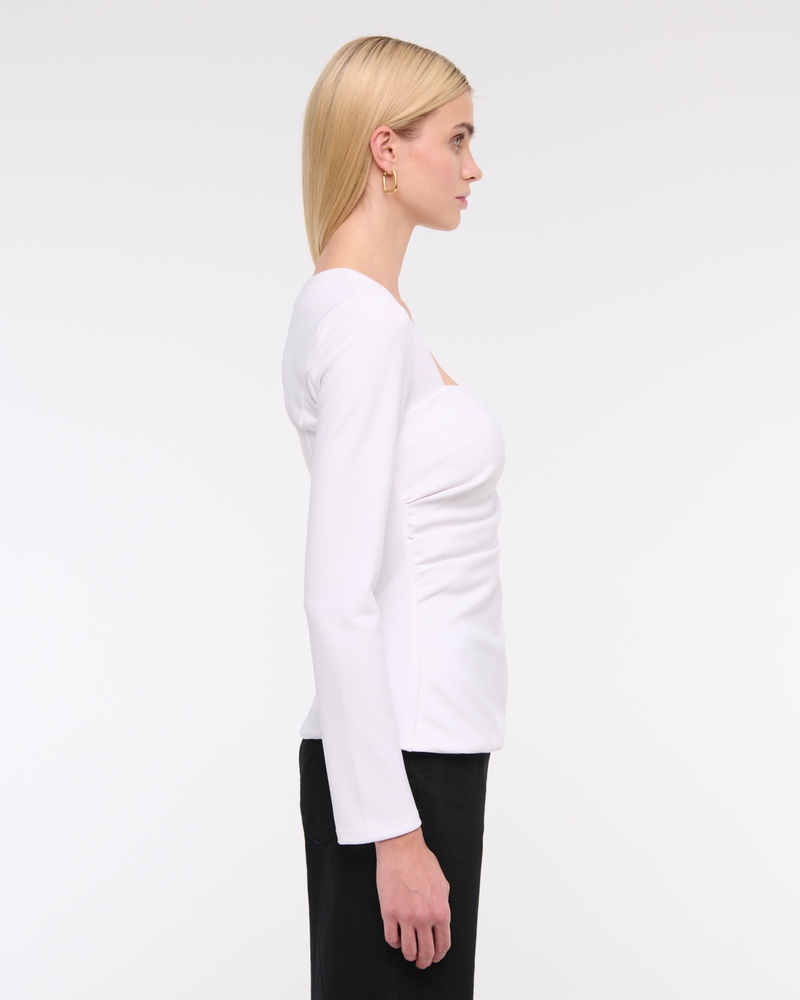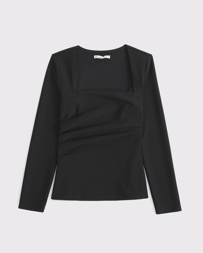Slim-fitting long-sleeve top in our stretch crepe fabric, featuring side ruching details along the bodice and on-trend portrait neckline. Imported.