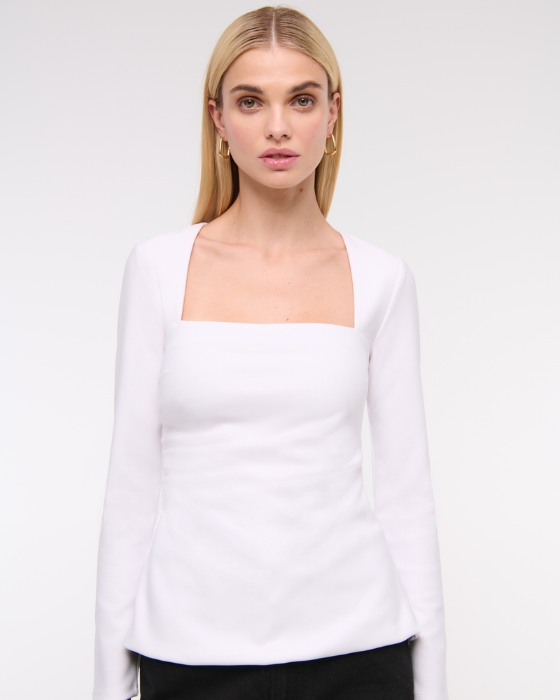 Long-Sleeve Stretch Crepe Portrait Top