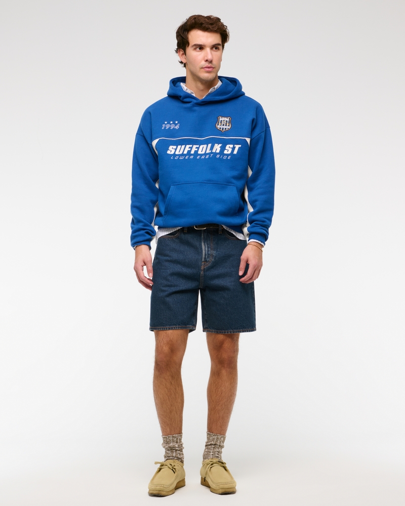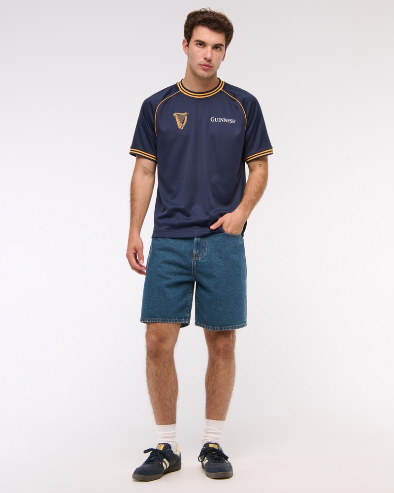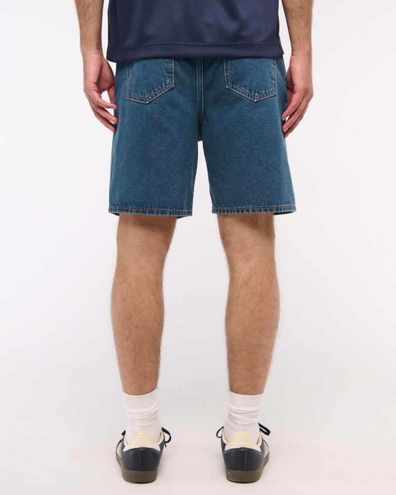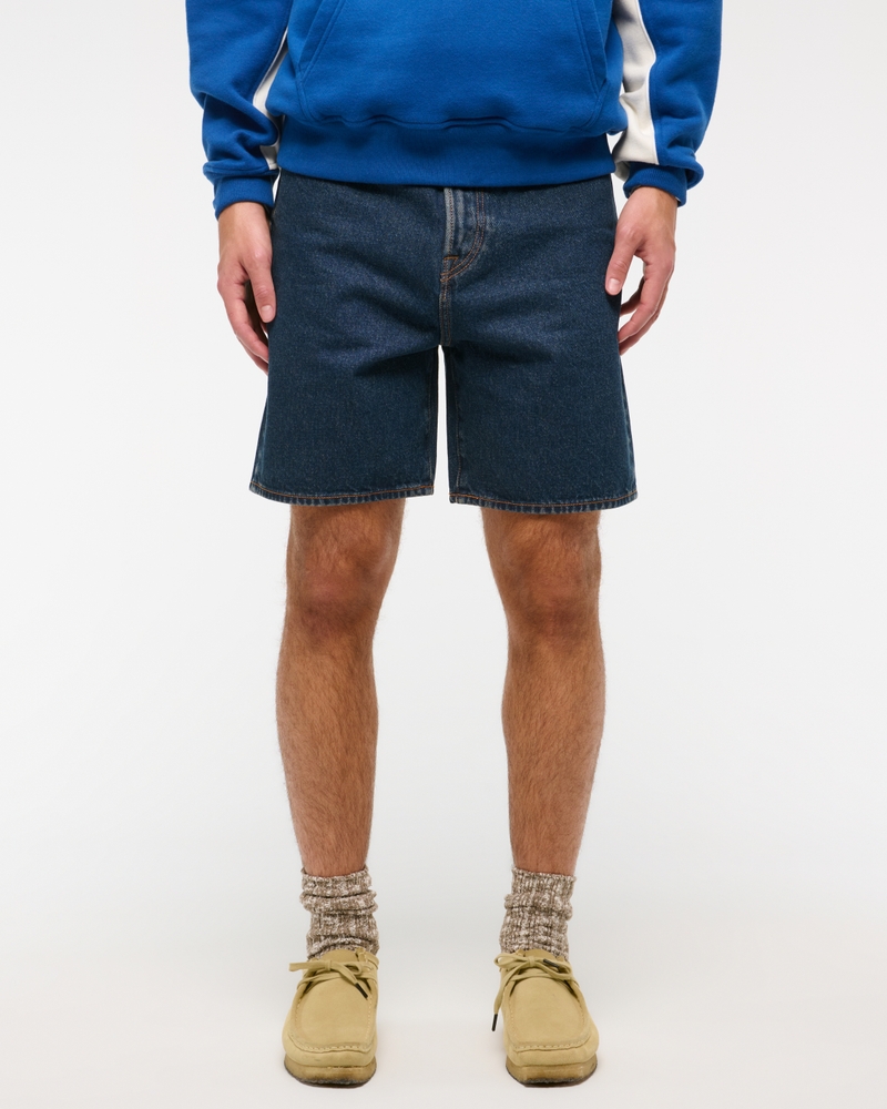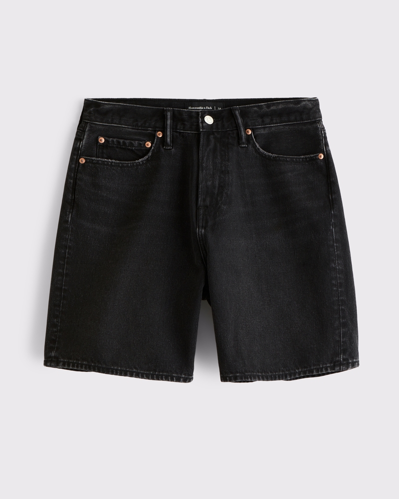 Our 9 inch (23 cm) denim shorts in a loose, relaxed fit and our 100% cotton lightweight garment dye denim fabric, with a black wash and clean hem. Imported.