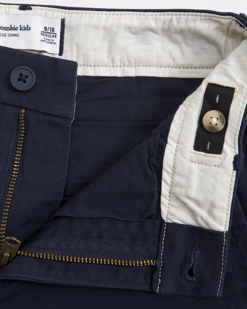 Comfortable chino pants in a satin twill fabric and loose fit through the leg. Features a fixed elasticated waistband and side pockets. Imported.