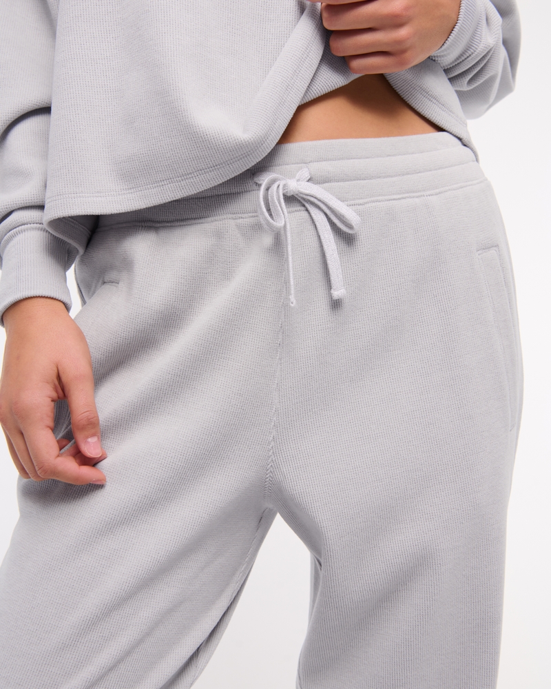 High rise joggers in our lounge waffle fabric and oversized-fit silhouette, with an elasticated waistband, exterior drawcords, all-over waffle texture, pockets and banded cuffs. Imported.
