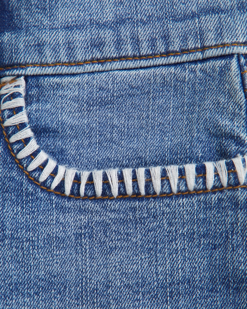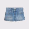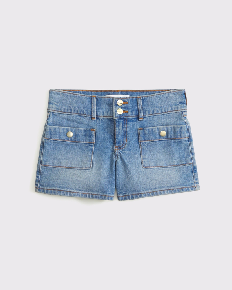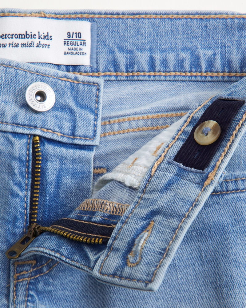Low rise midi shorts in a dark wash, with cuffed hems, functional pockets and waistband adjusters in all sizes. Imported.