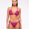 Our new cheeky coverage bottoms in our core nylon fabric and low rise fit, featuring adjustable tie straps on the side and on-trend gold bead details. Imported.