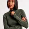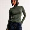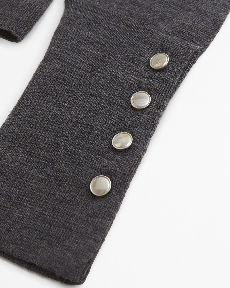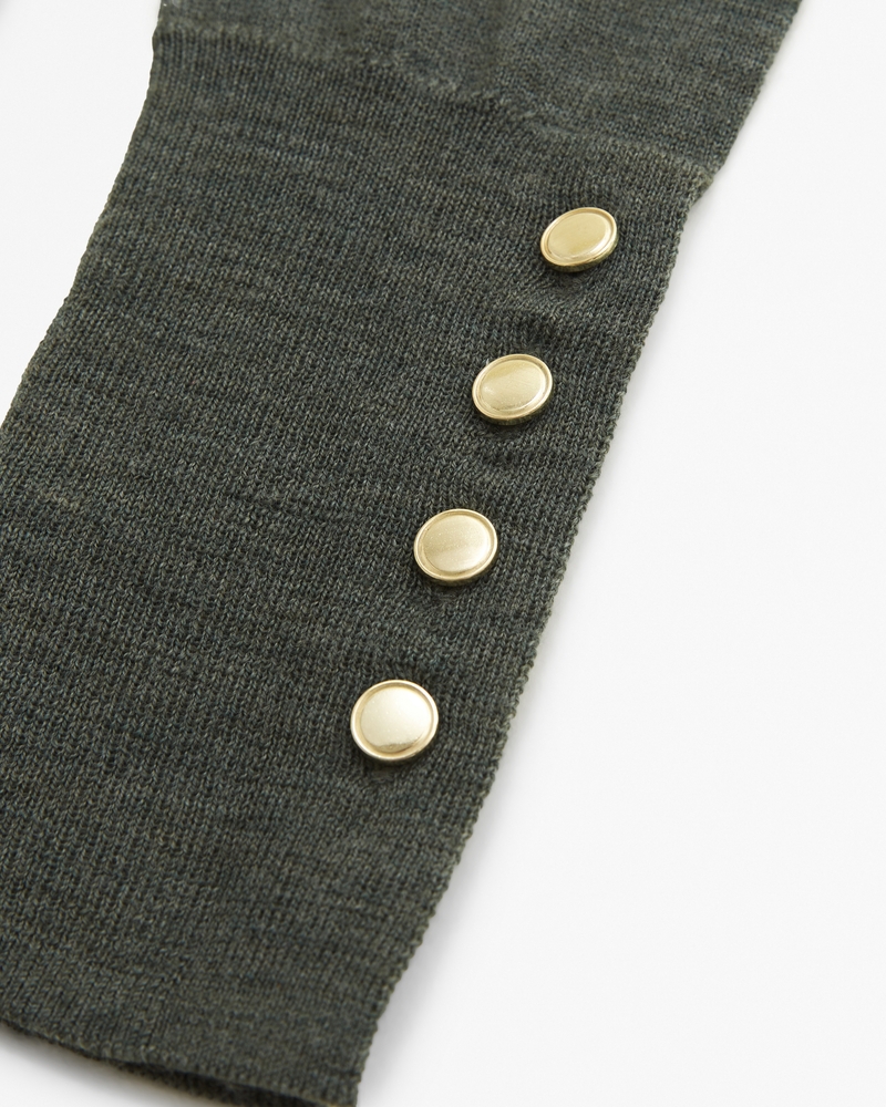 Slim-fitting long-sleeve top in our soft 100% merino wool yarn fabric, featuring a mock neckline and on-trend button details at the cuffs. Pairs perfect with your favorite mini skirt or tailored pants! Imported.