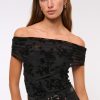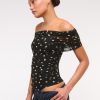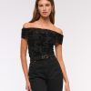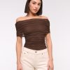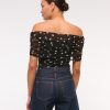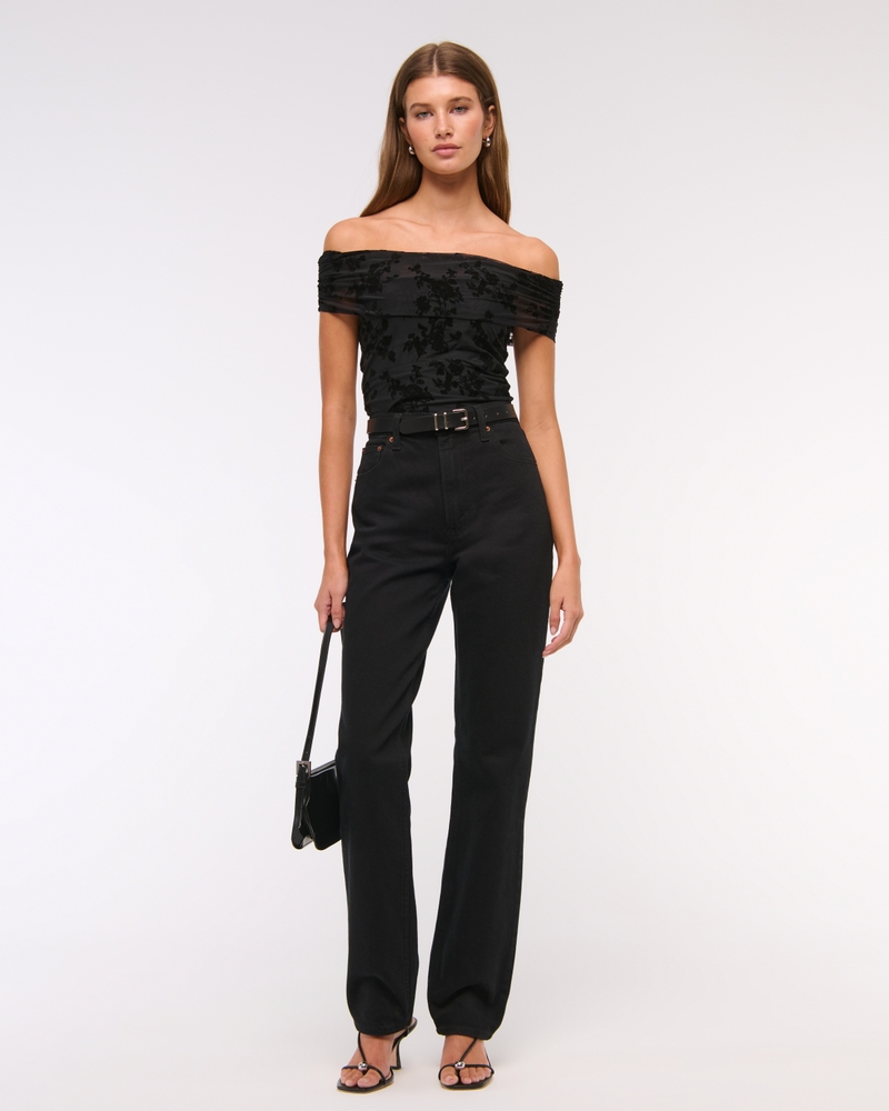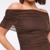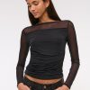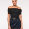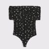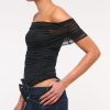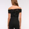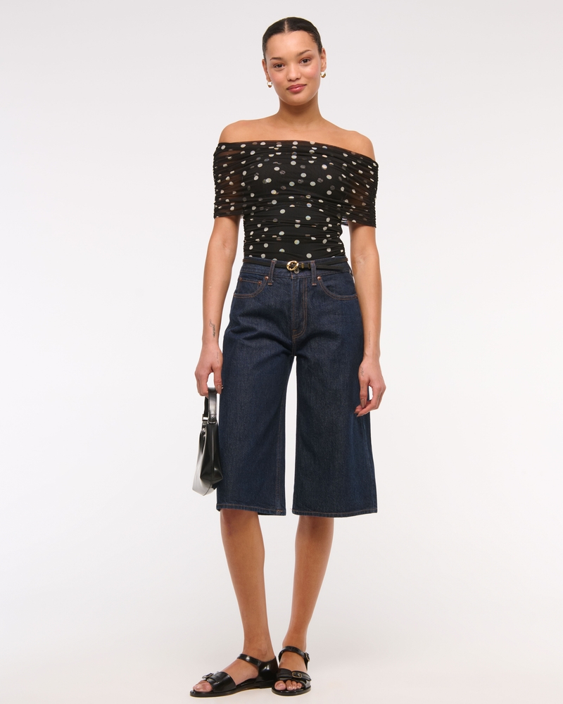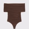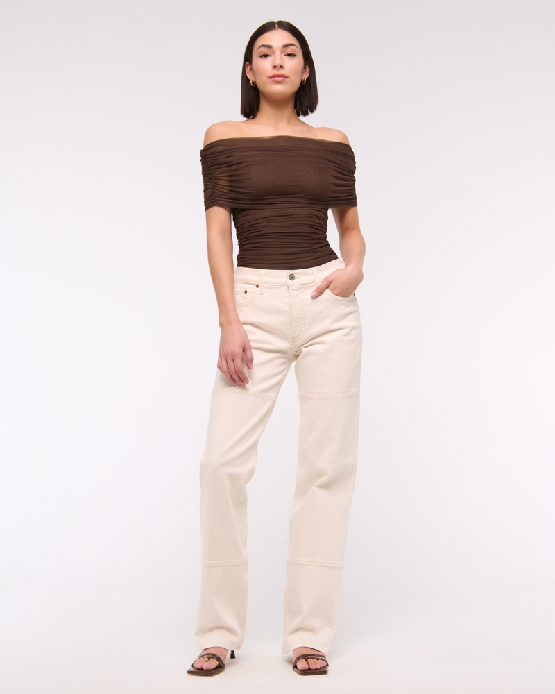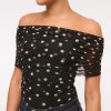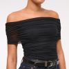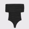 Slim-fitting bodysuit in our soft mesh fabric, featuring an off-the-shoulder foldover neckline, ruching details along the bodice and two-snap bottom closure. Imported.