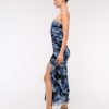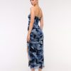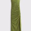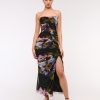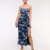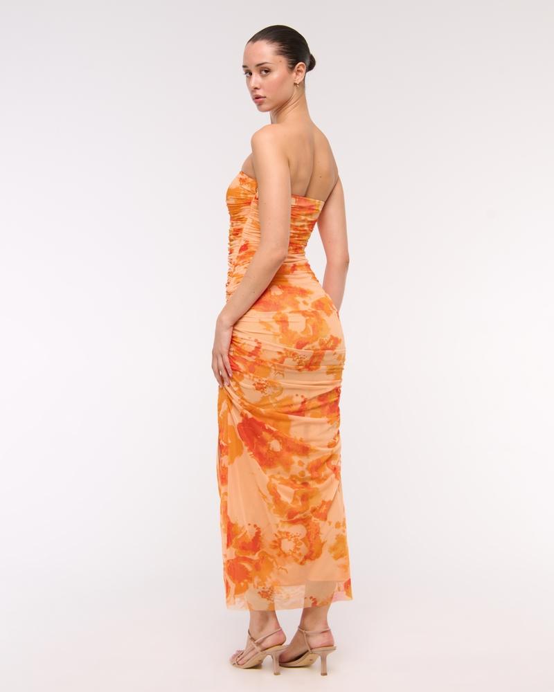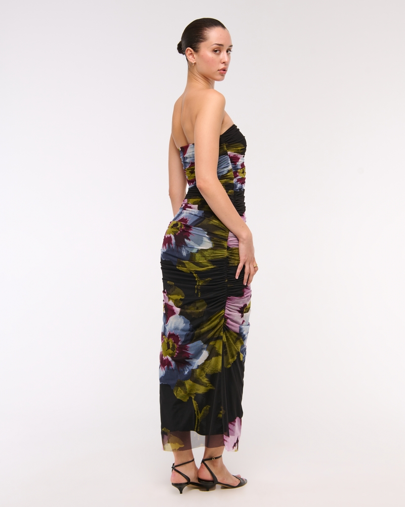 Mesh Strapless Ruched Maxi Dress