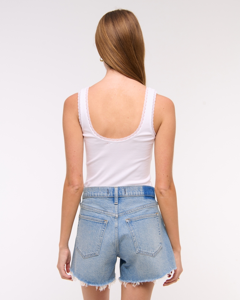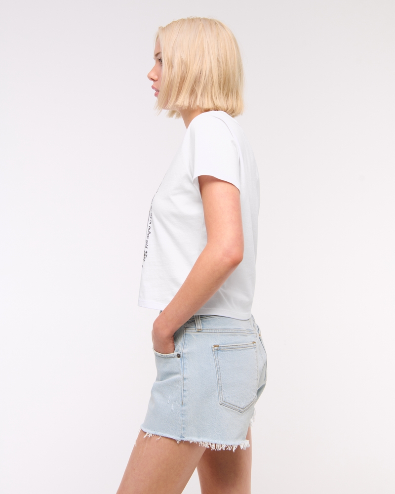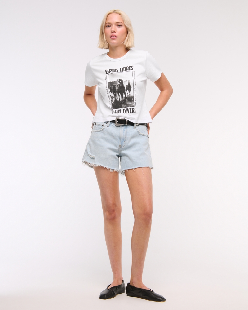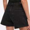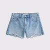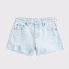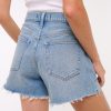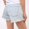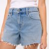 Mid rise with an A-Line fit, that is anchored at the waist and loose through the hip and thigh for a skirtier look, and a 4 inch (10 cm) inseam. Vintage stretch denim in a light wash, with distressed details and raw-cut hem. Imported.