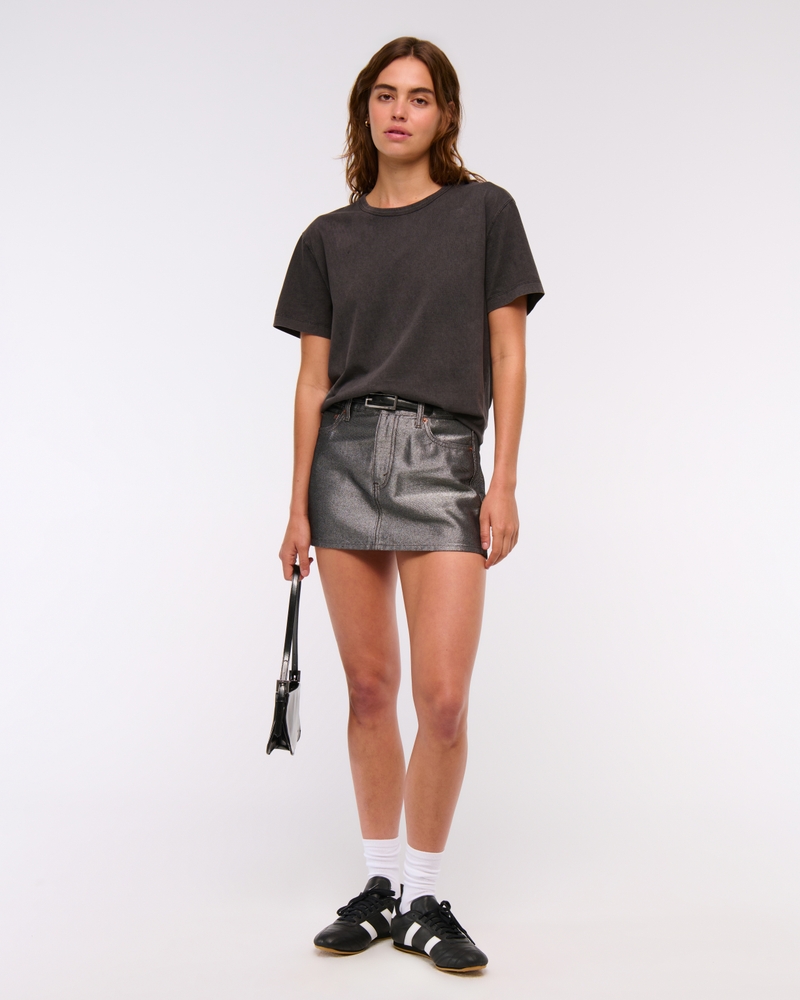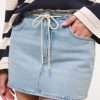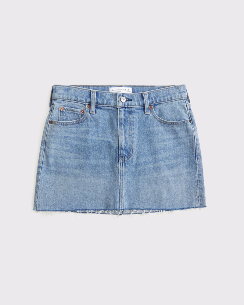 Our new mid rise mini skirt in our soft lightweight rigid denim fabric, featuring pockets throughout, belt loops, side-slit details and front J-stitch zipper for a secure fit. Imported.