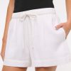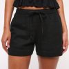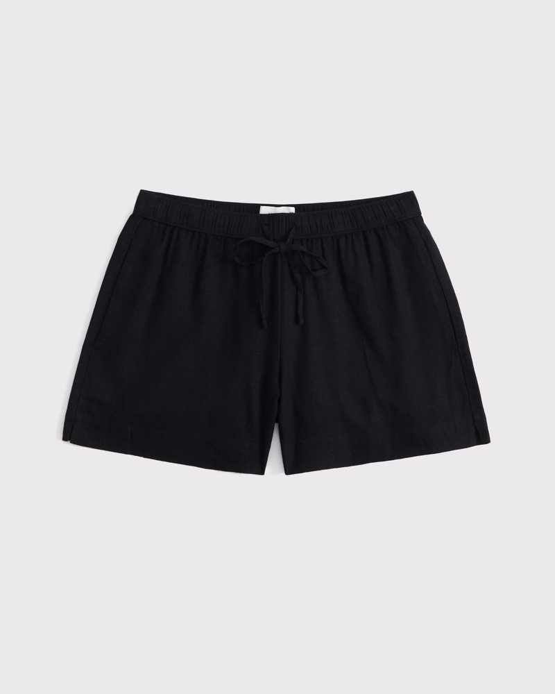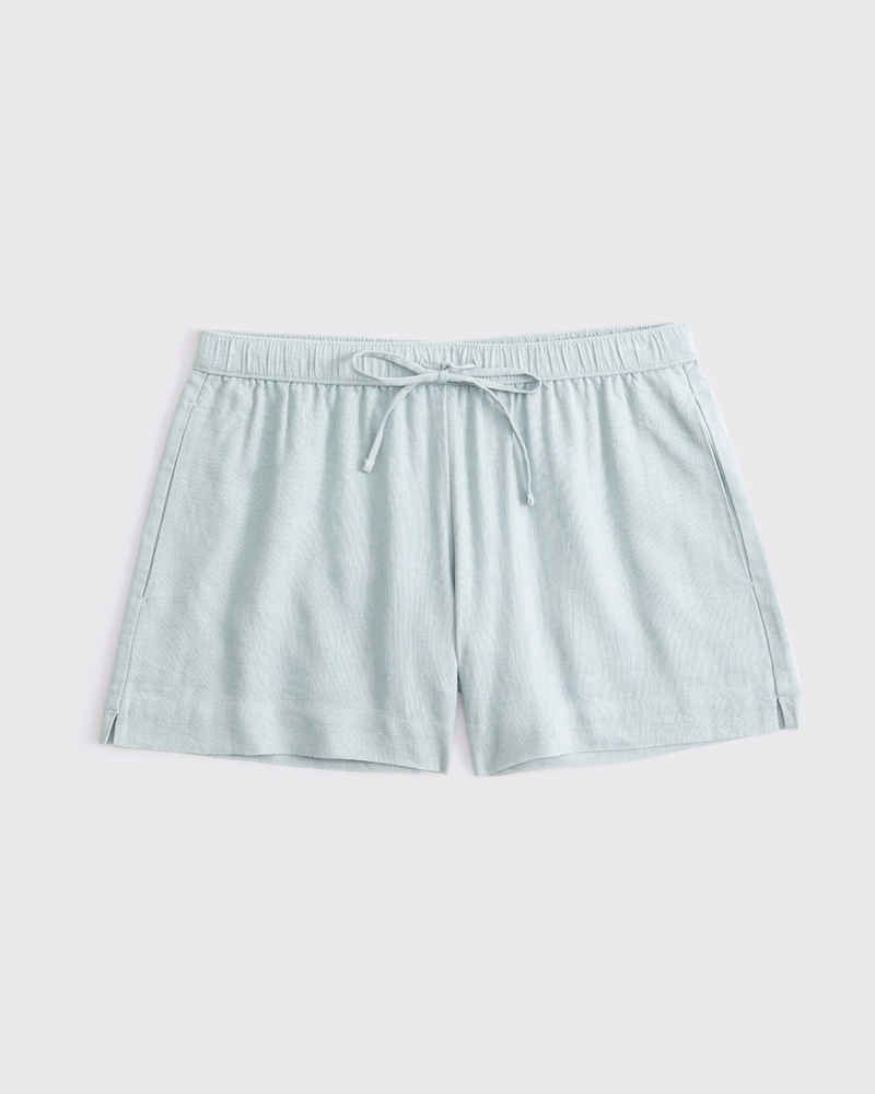 Mid rise comfy 3.5 inch (9 cm) pull-on shorts in a soft linen-blend fabric, featuring an elasticated drawstring waistband and front pockets. Imported.
