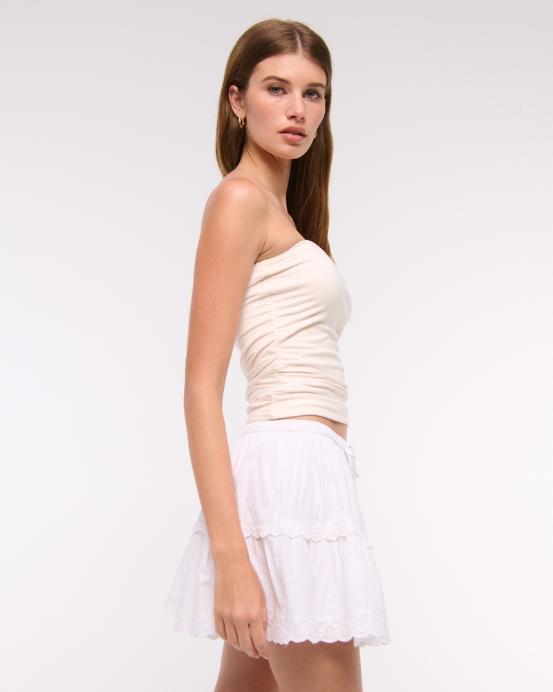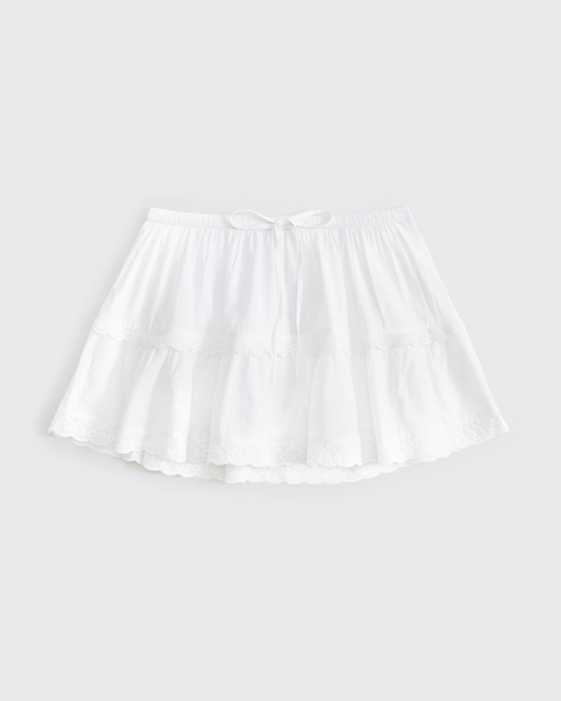 Mid rise mini skort in our soft cotton-modal fabric, featuring a tie-front pull-on style waistband, a flirty skirt with lace-trim details and shorts lining for comfort. Imported.
