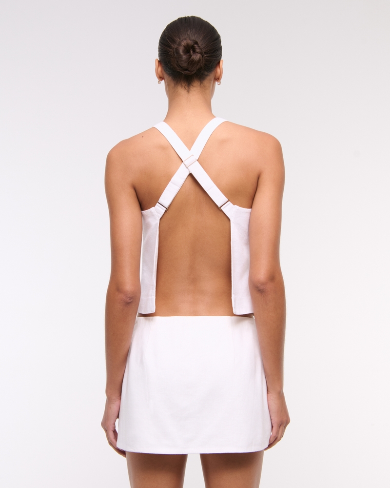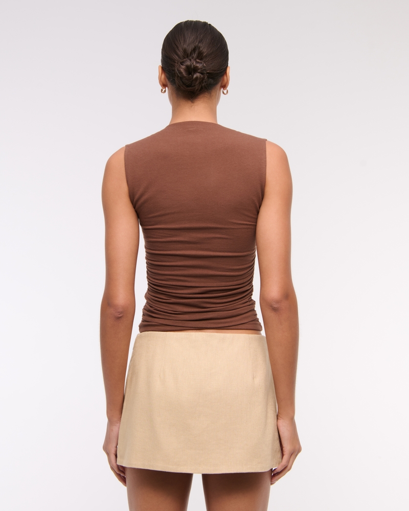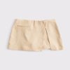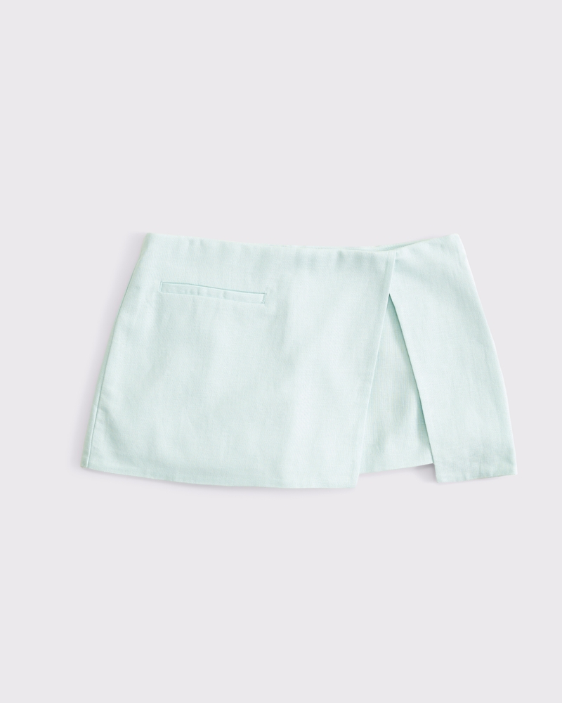Our new mid rise mini skort in our soft linen-blend fabric and micro length, featuring wrap-front detail, a shorts lining underneath for comfort, high-slit detail and a side zipper for a secure fit. Imported.