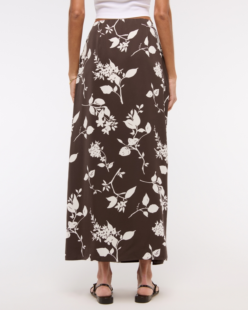 Mid rise maxi skirt in our matte satin fabric, with a wrap-front silhouette and side-tie detail. Imported.