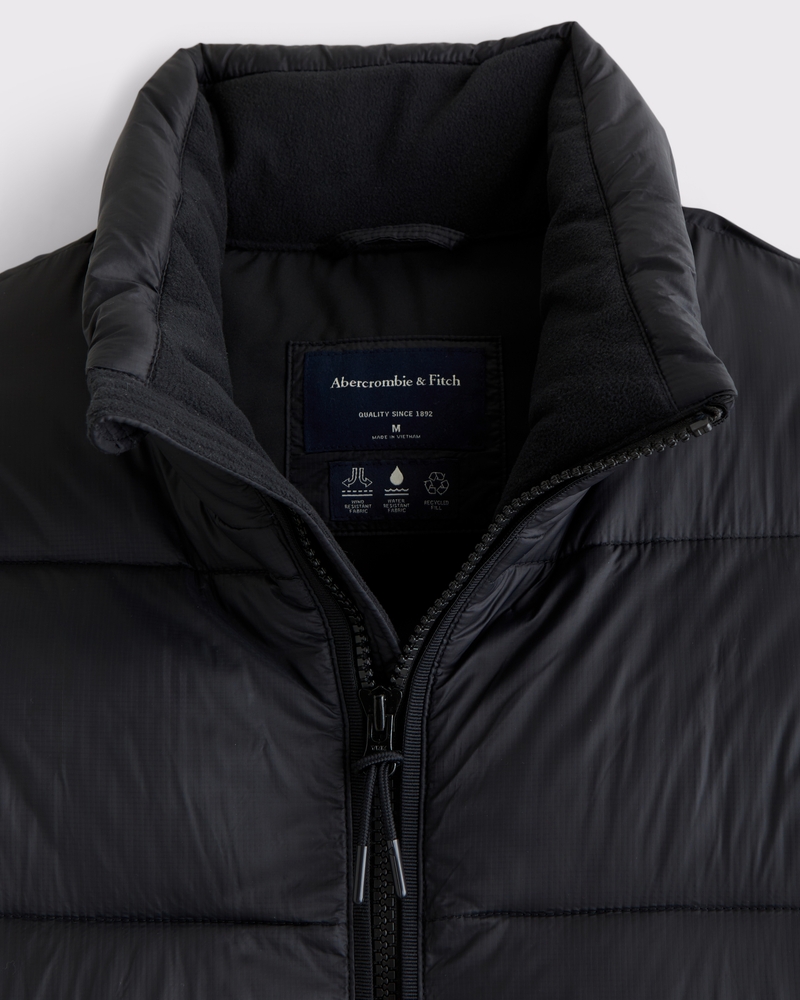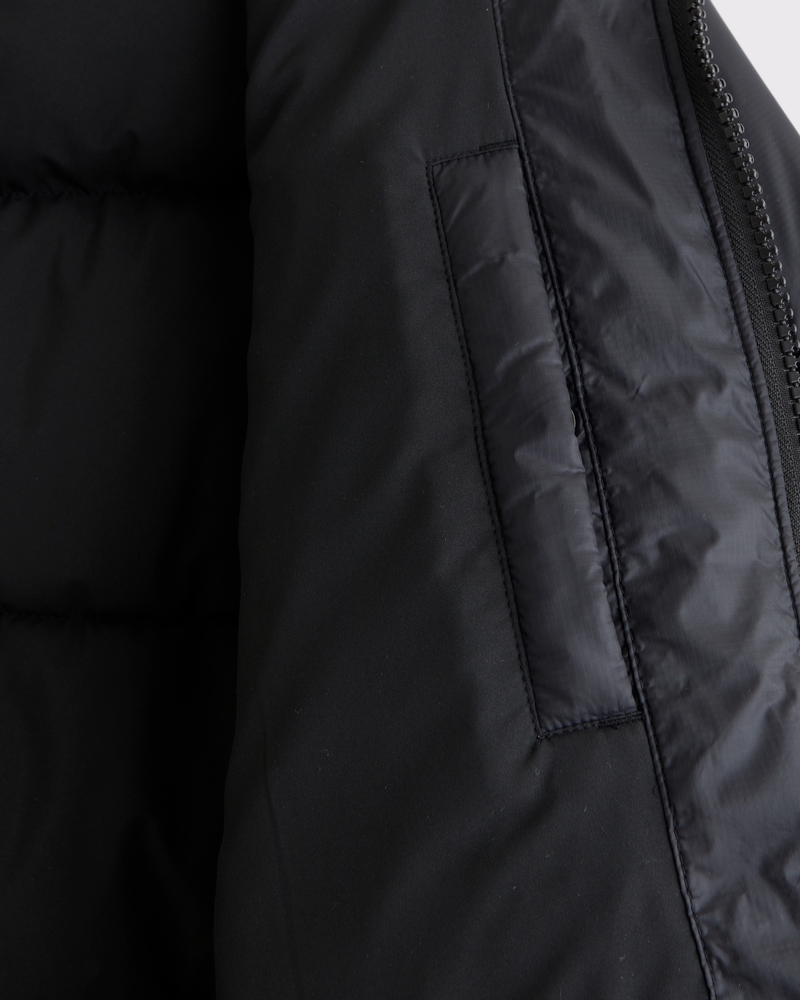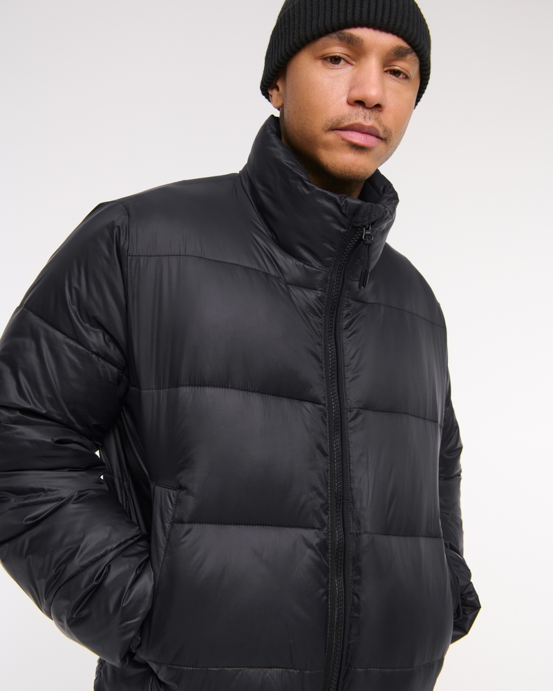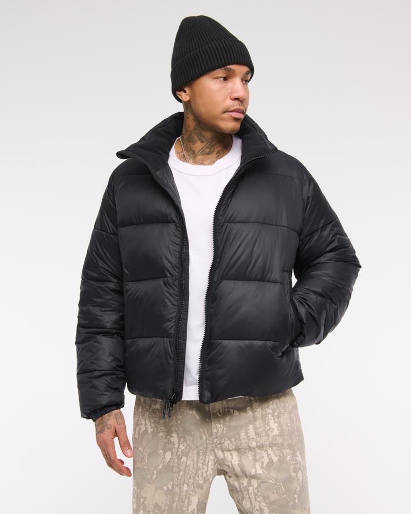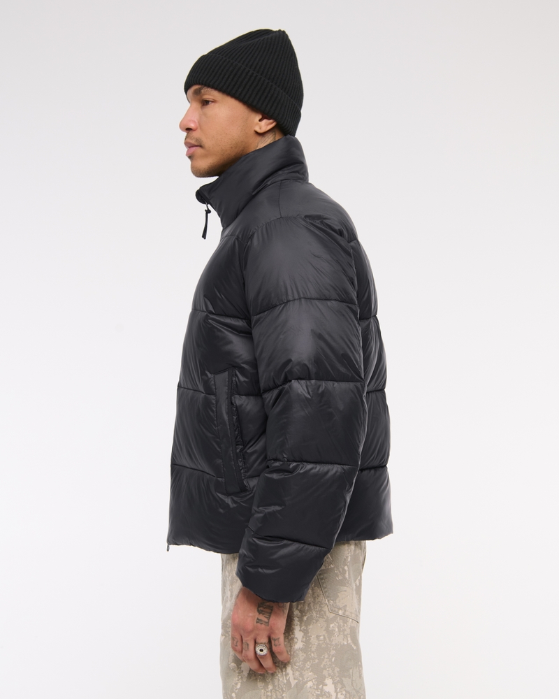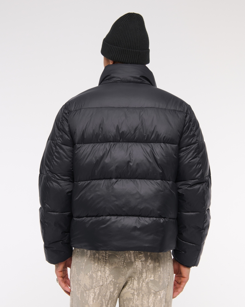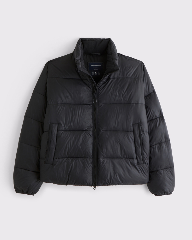 Our new heavyweight puffer jacket in a nylon fabric with wind- and water-resistant properties, featuring a cropped length, relaxed-fit silhouette, recycled fill to protect against the elements, side pockets with interior chest pocket, zip-up front, channel quilting details, mockneck collar and storm cuffs. Imported.