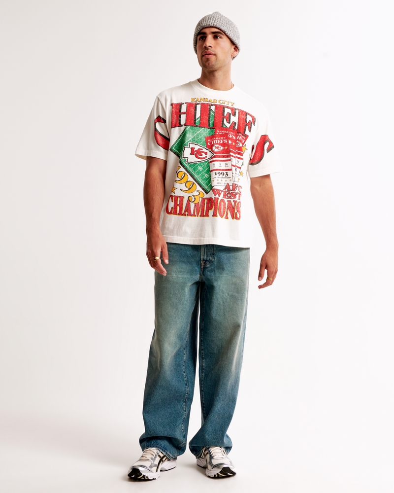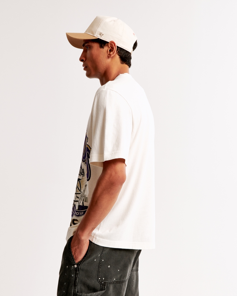 Classic short-sleeve tee in our softAF 180g fabric and vintage oversized-fit silhouette, featuring New England Patriots-inspired graphic detail at chest and back and crew neckline. Imported.