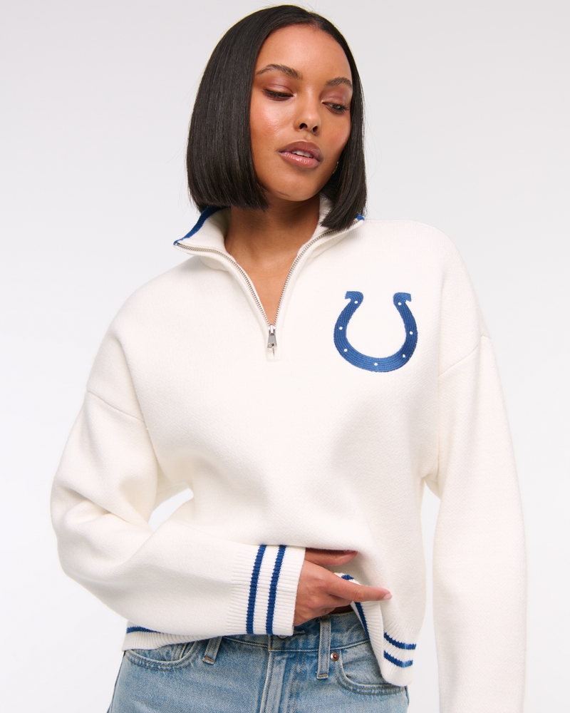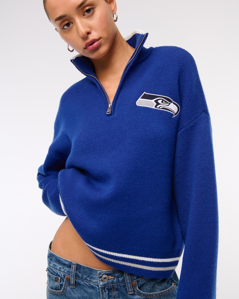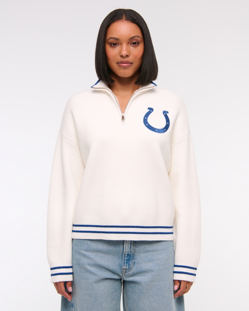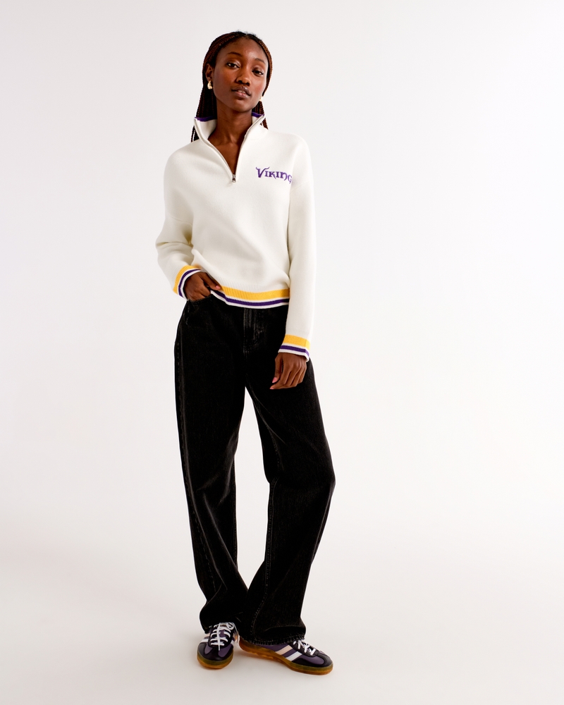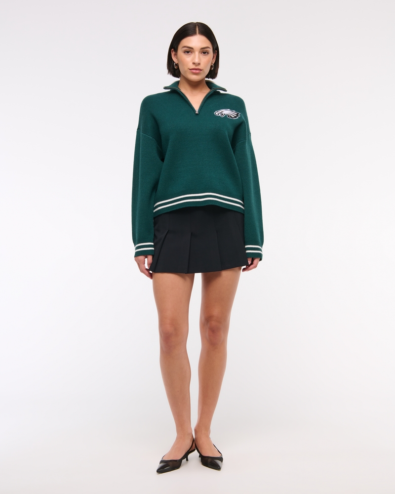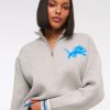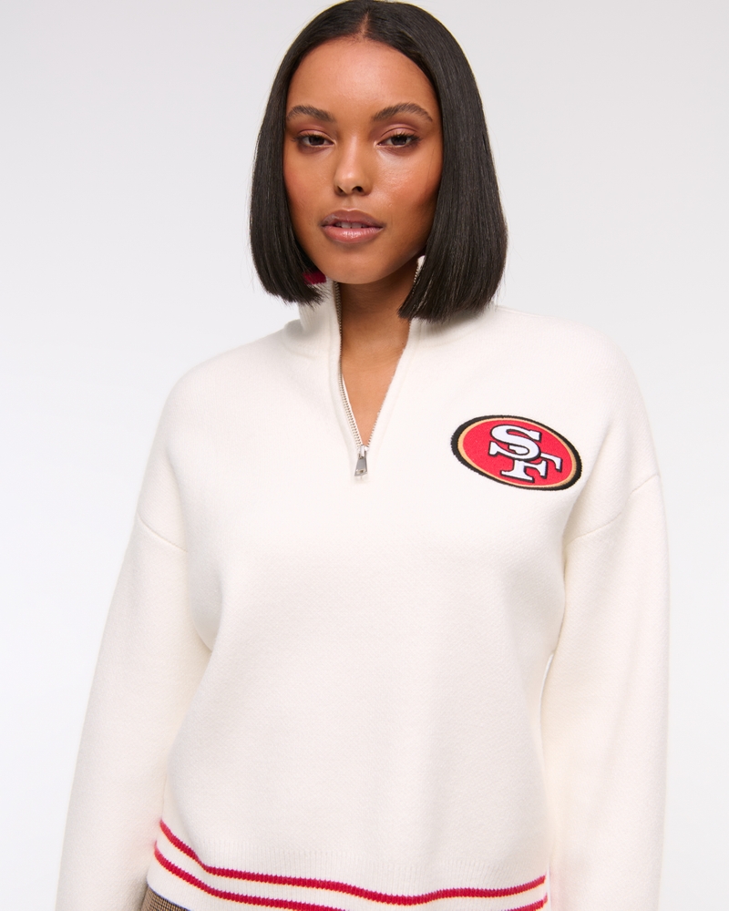 Easy-fitting sweater in our super soft LuxeLoft fabric, featuring New York Jets-inspired graphic detail at left chest, half-zip detail and rib trims at the neckline, hem and cuffs. Pairs perfect with your favorite pair of jeans for game day!