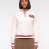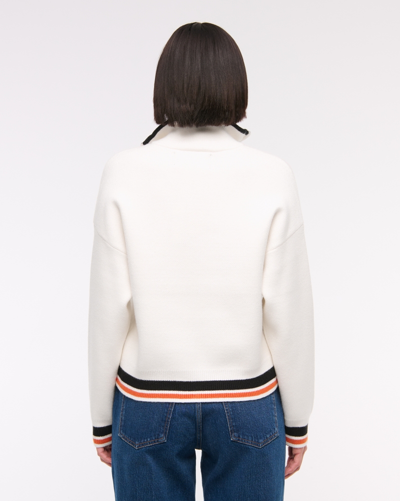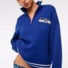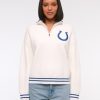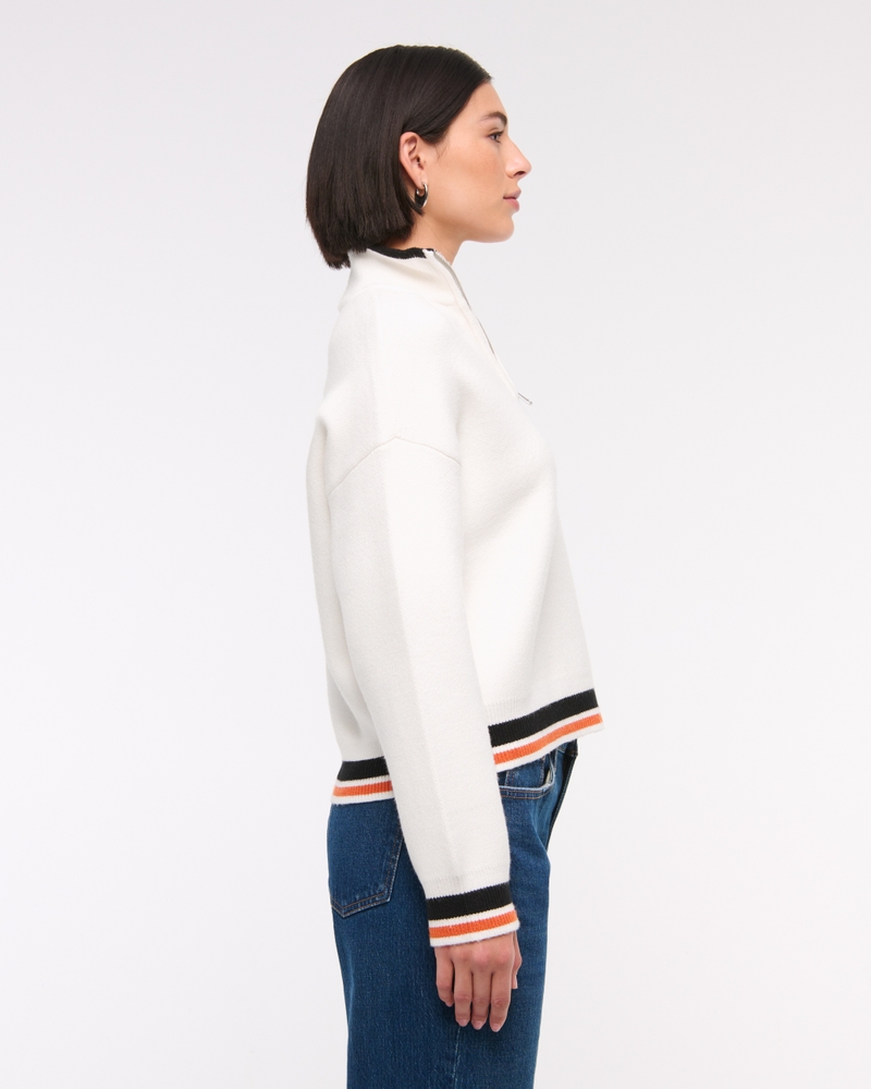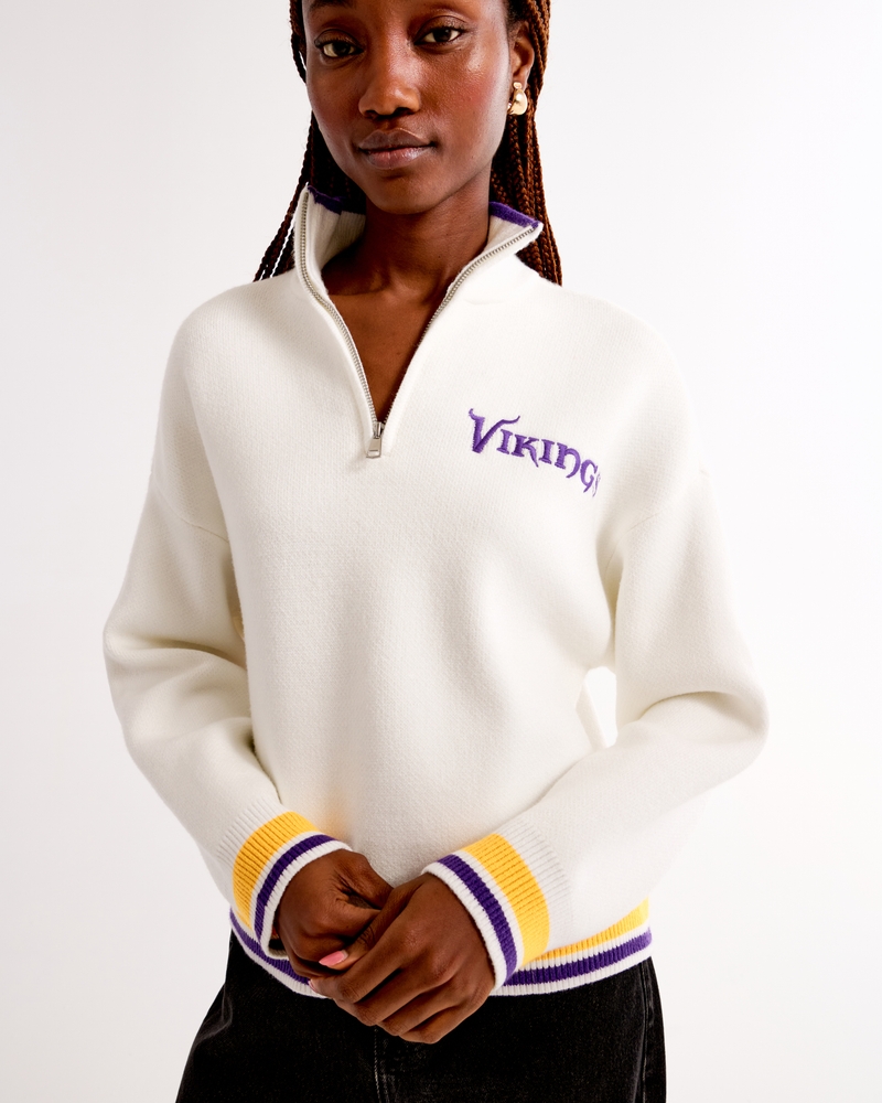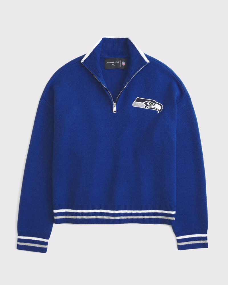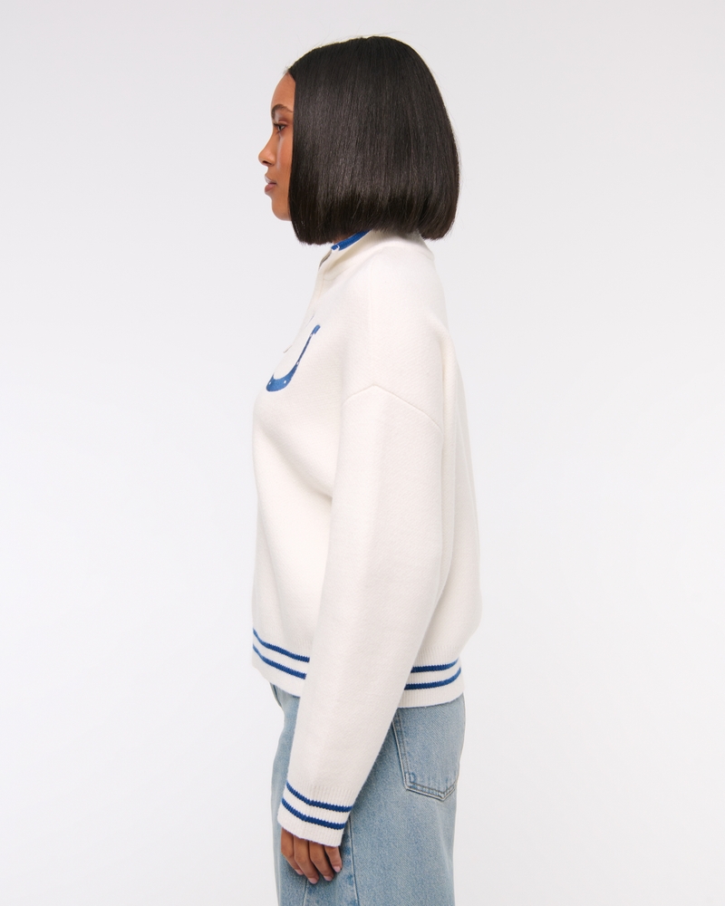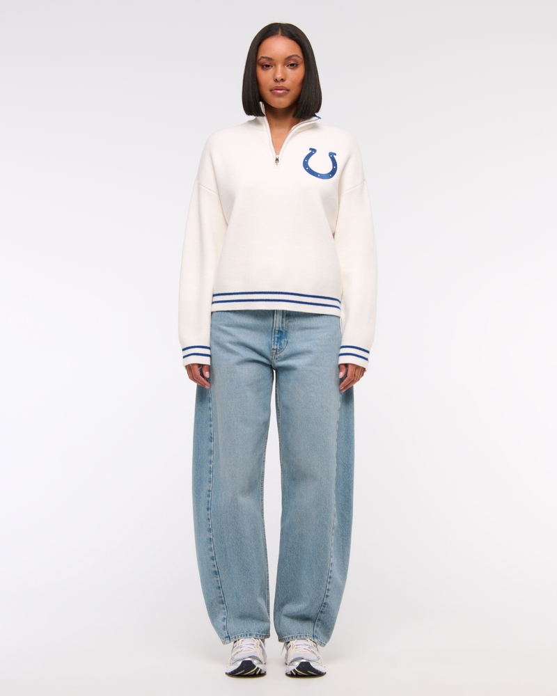 Easy-fitting sweater in our super soft LuxeLoft fabric, featuring New York Jets-inspired graphic detail at left chest, half-zip detail and rib trims at the neckline, hem and cuffs. Pairs perfect with your favorite pair of jeans for game day!