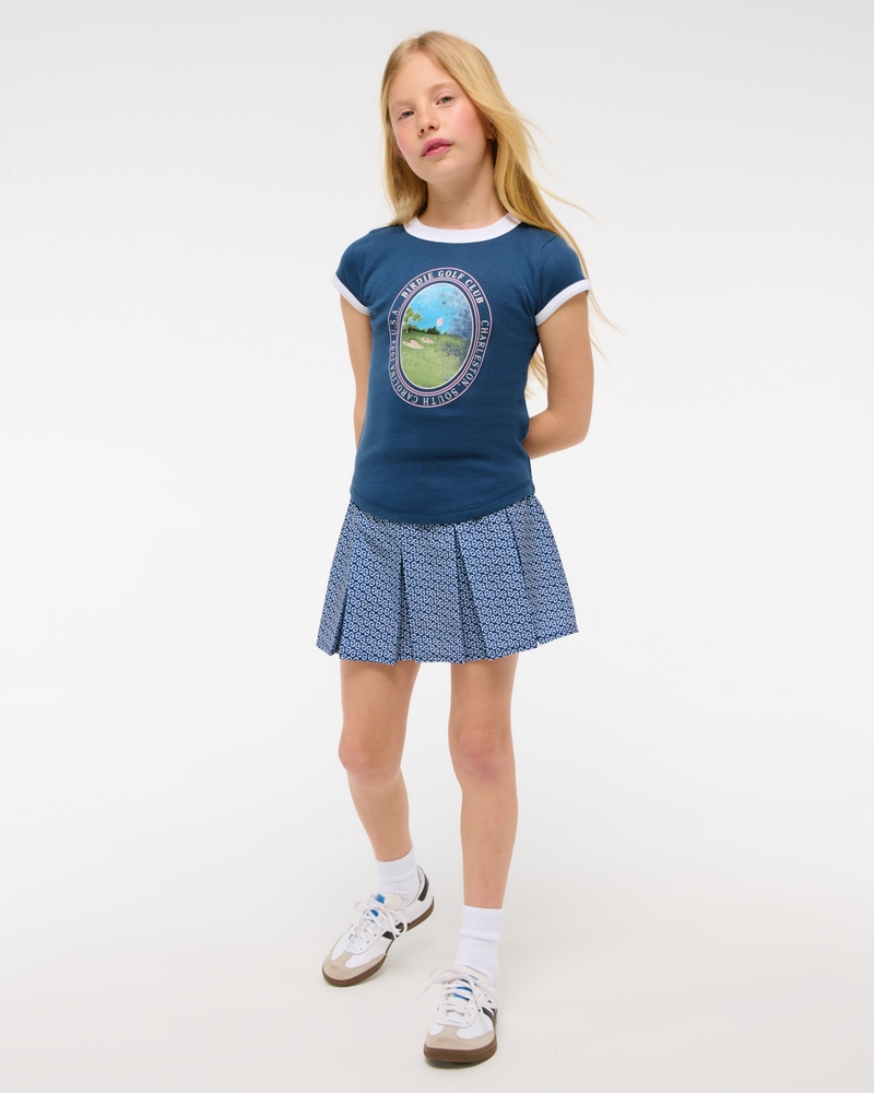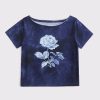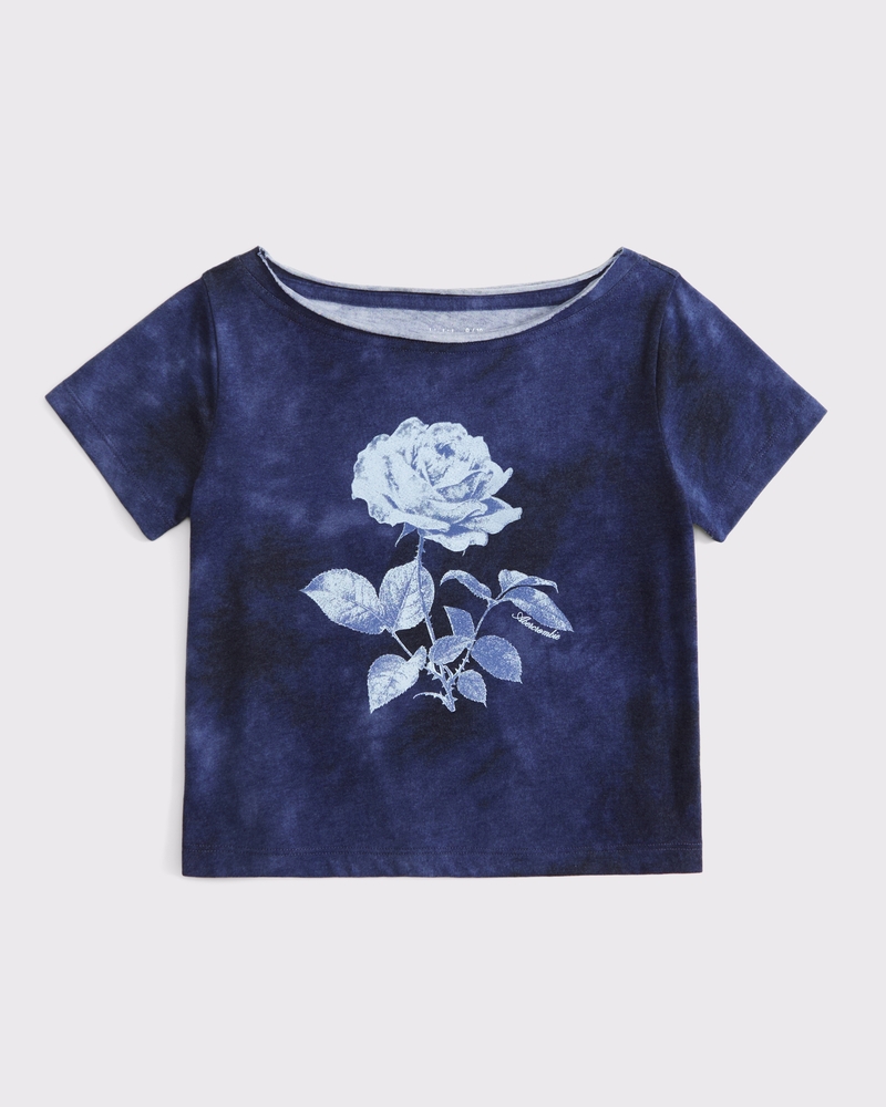 Easy-fitting short-sleeve tee in our soft cotton-blend fabric and short length, that covers the waistband and hits slightly above the hips, with photoreal graphic detail at chest, off-the-shoulder detail and straight hem. Imported.