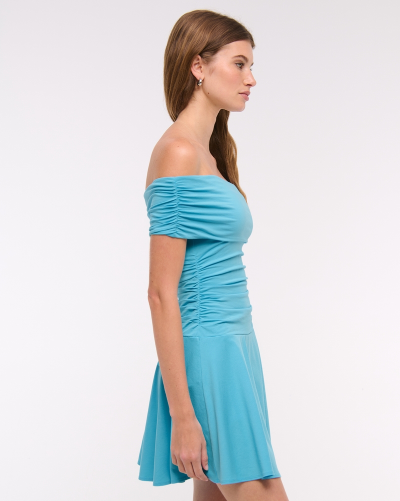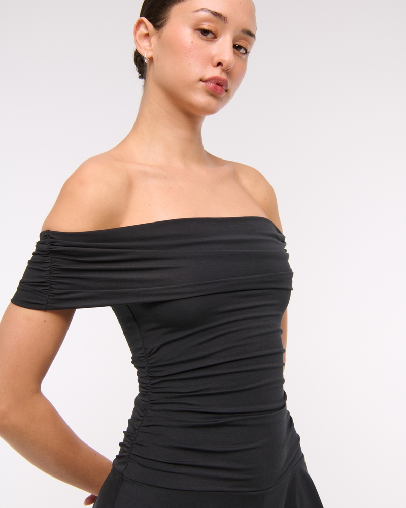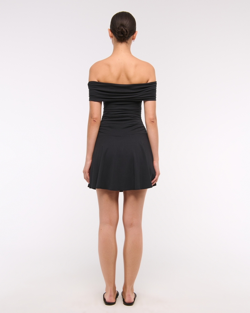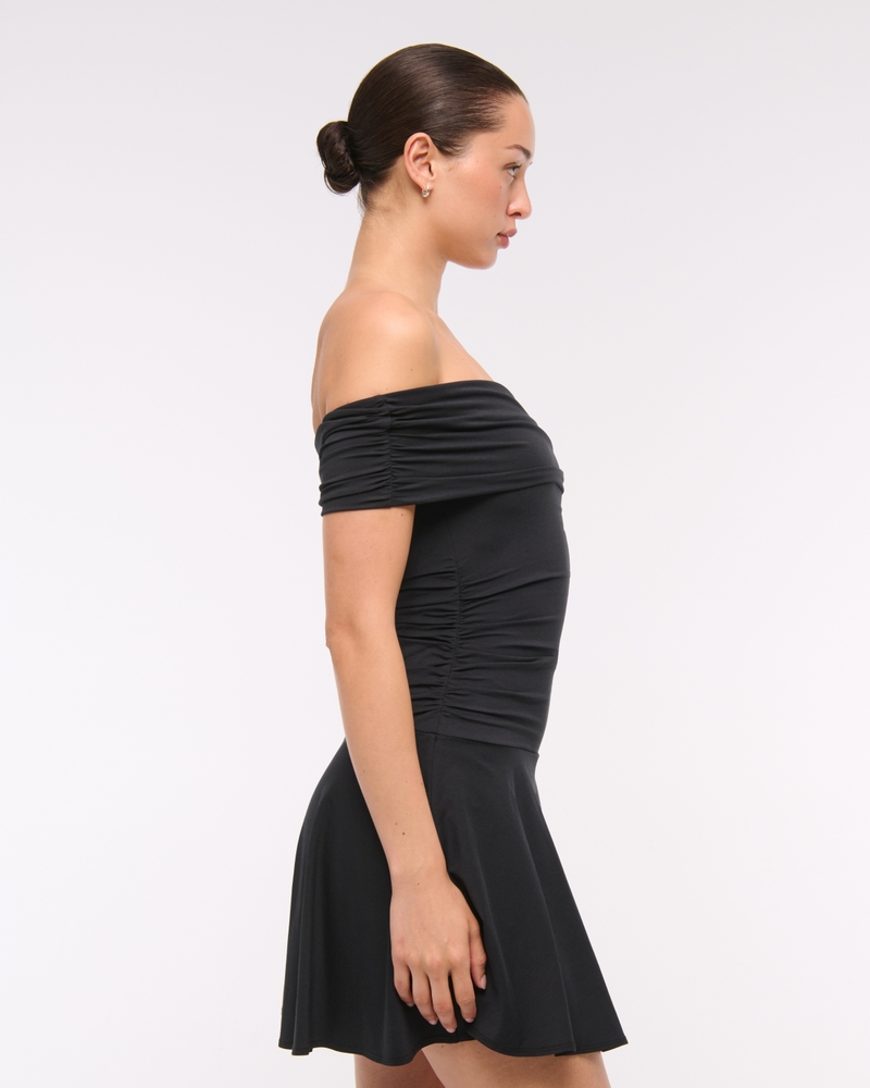 Comfortable skort in our softAF cotton-modal fabric, featuring flattering draping details along the bodice, off-the-shoulder detail, a dropped waistline and built-in knit shorts. Imported.