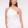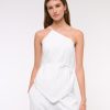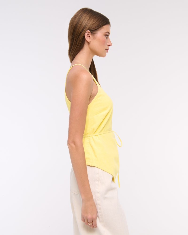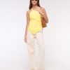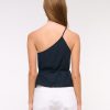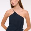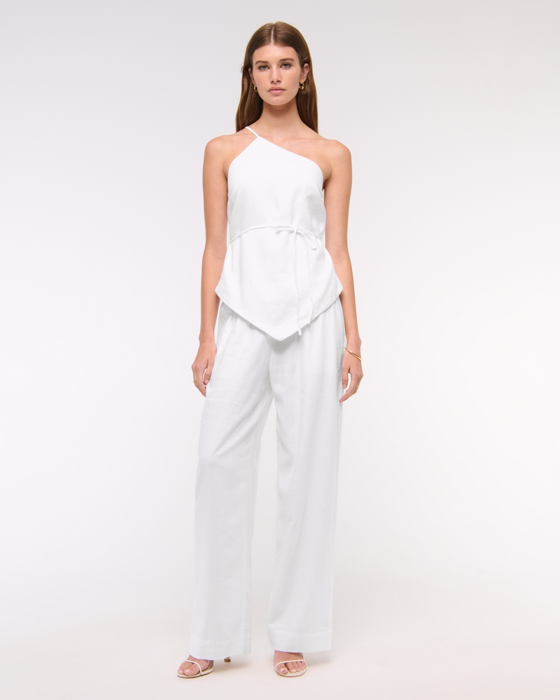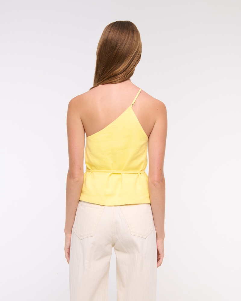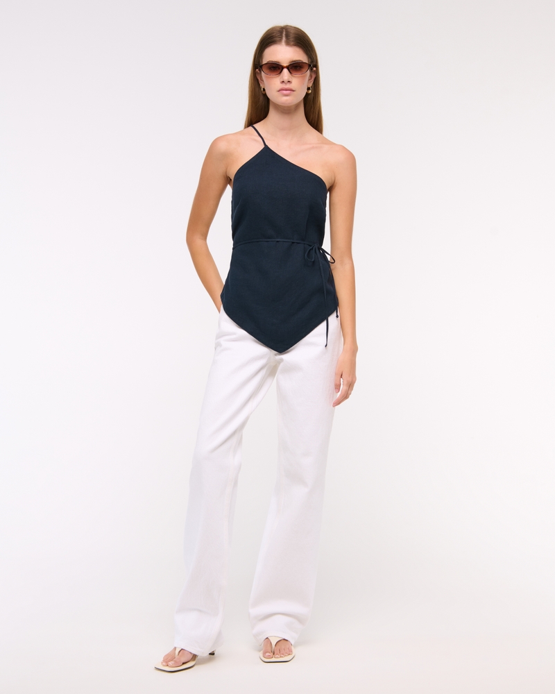 Flattering one-shoulder top in our soft linen-blend fabric, featuring adjustable tie details at the waist, asymmetrical neckline and on-trend pointed hem. Imported.