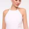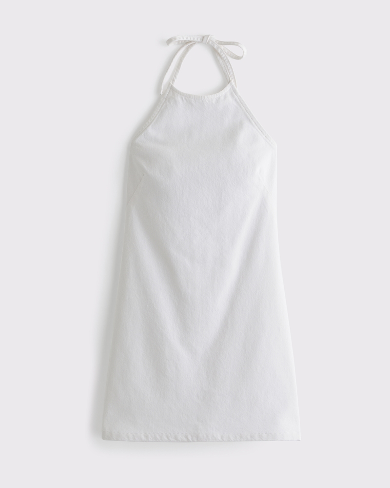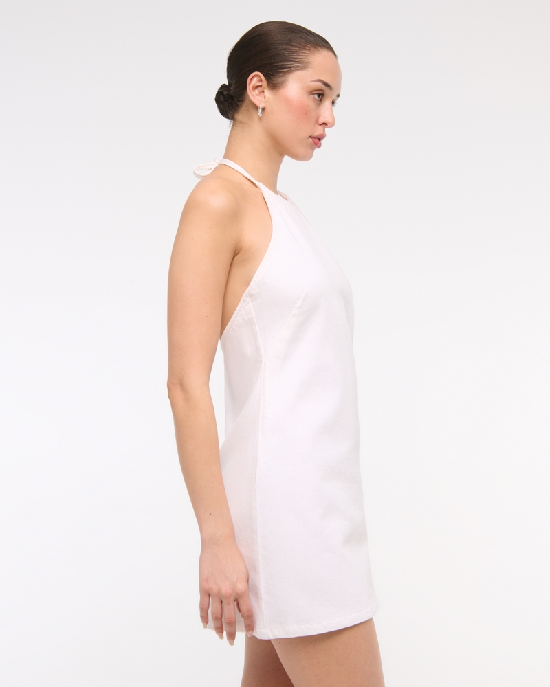 Flattering mini dress in our comfortable denim fabric, featuring a high-neck and tie-back halter neckline, clean bodice and skirt and flattering open-back detail. Imported.