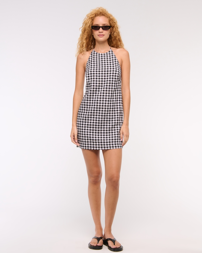 Flattering mini dress in our soft linen-blend fabric, featuring a high-neck and tie-back halter neckline, clean bodice and skirt and flattering open-back detail. Imported.