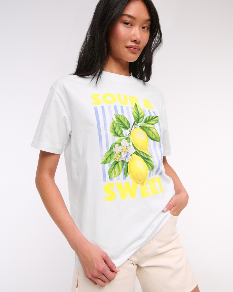 On-trend short-sleeve tee in an oversized-fit silhouette and our softAF fabric, featuring lemon-inspired graphic detail at chest, crew neckline and straight hem. Imported.