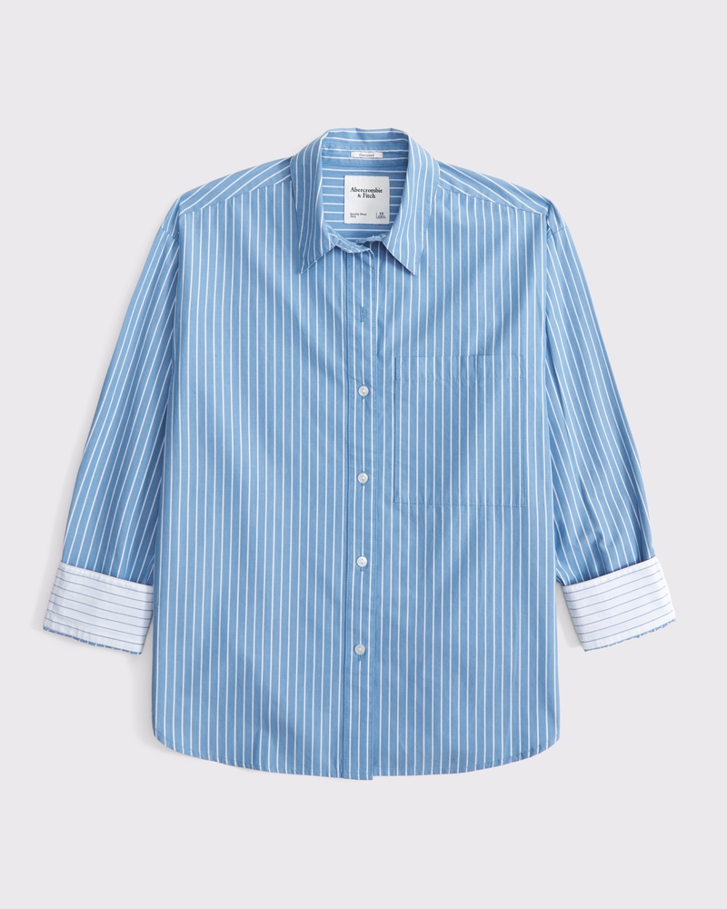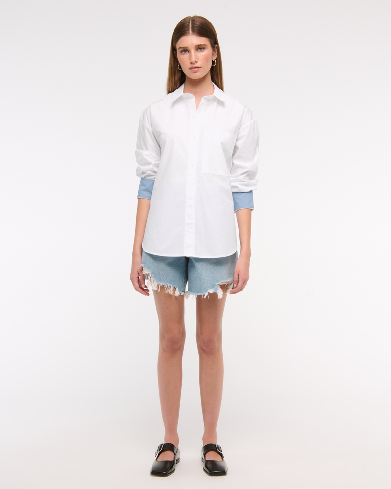 Comfy shirt in our soft poplin fabric and oversized-fit silhouette, featuring left chest pocket, classic collar, button-up front and curved hem. Imported.