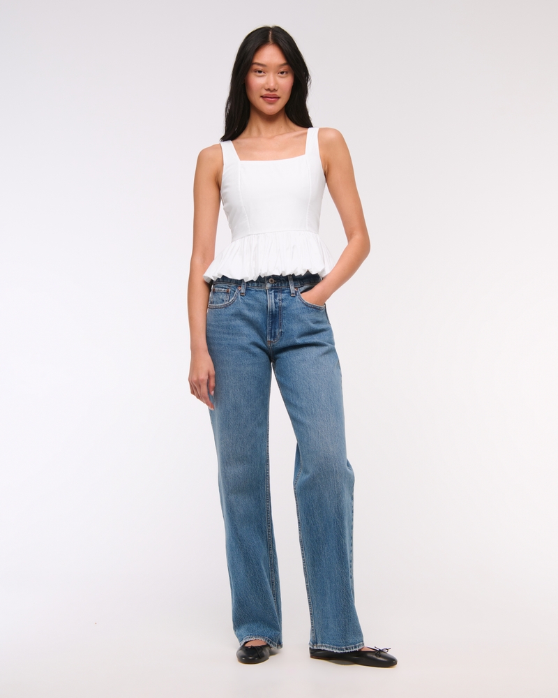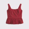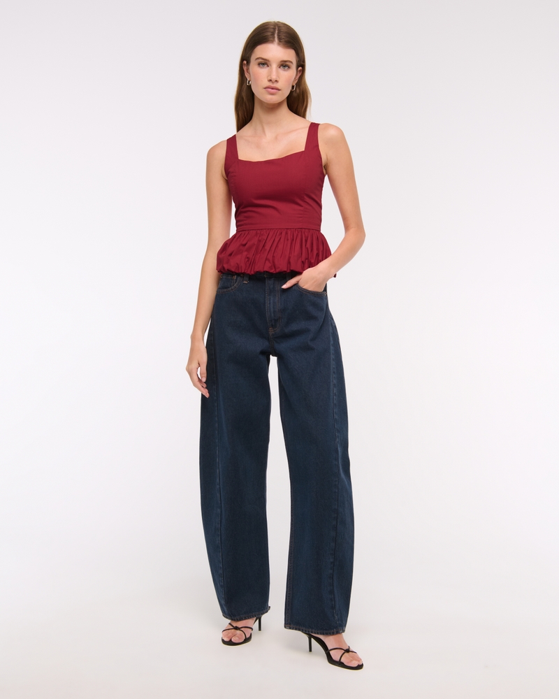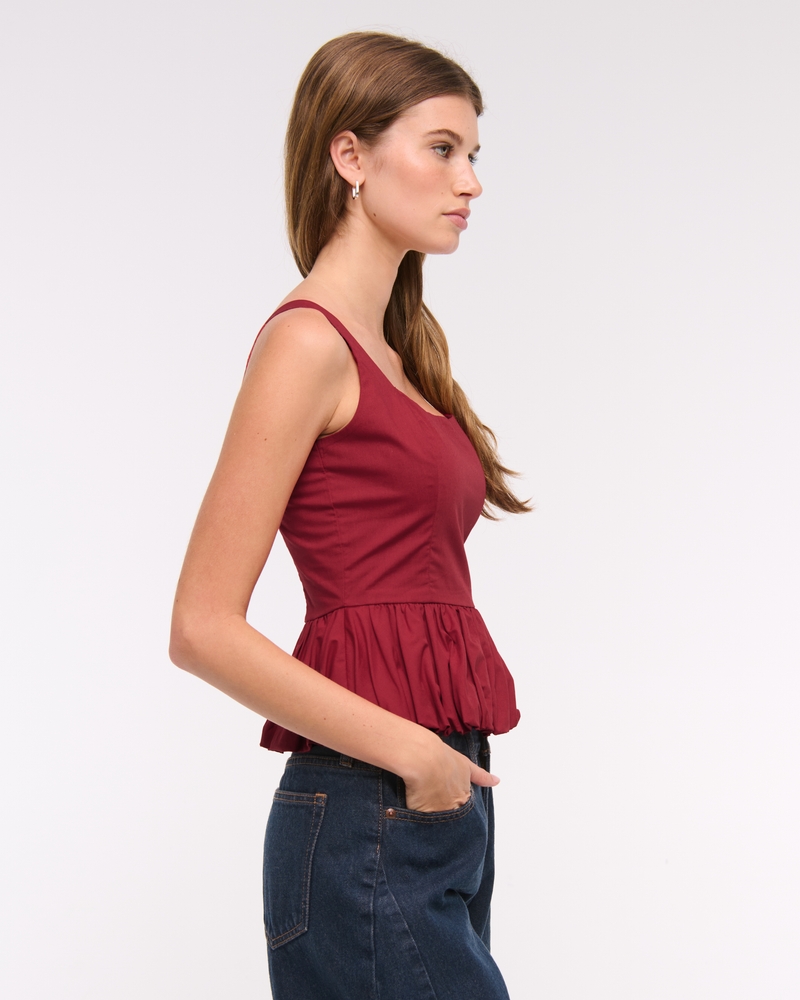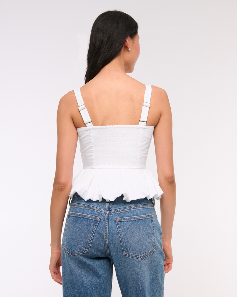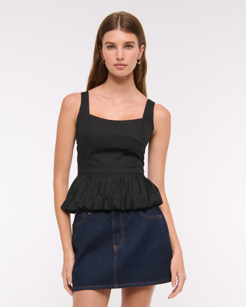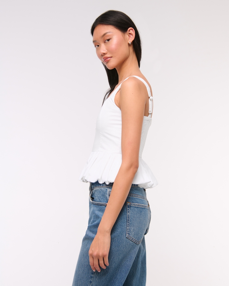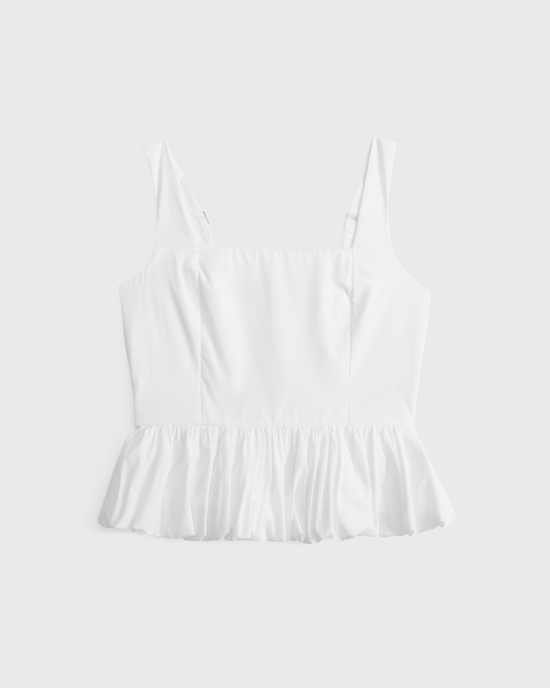 Easy-fitting tank in our soft poplin fabric, featuring a square neckline, corset-style seaming details along the bodice, adjustable straps and on-trend bubble hem. Imported.