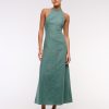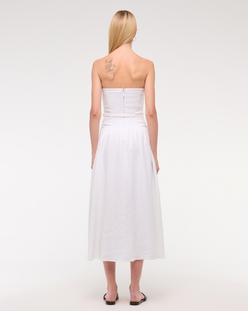 Premium Linen Drop-Waist Belted Midi Dress