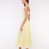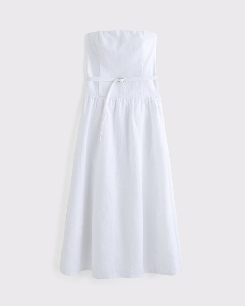 Flattering midi dress in our elevated 100% linen fabric, featuring an on-trend dropped waistline, a functional belt and a volume skirt. Imported.