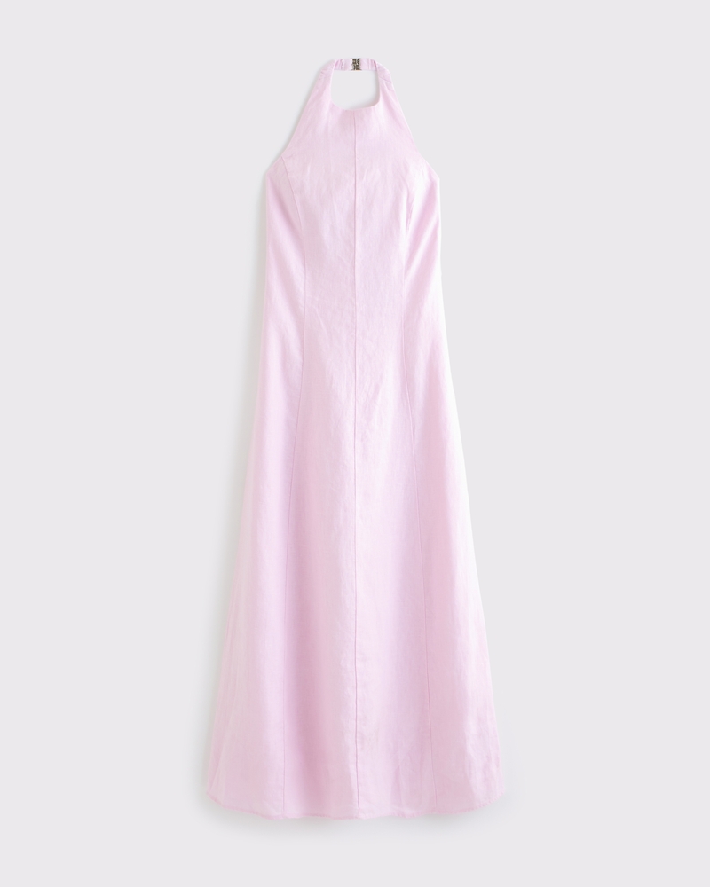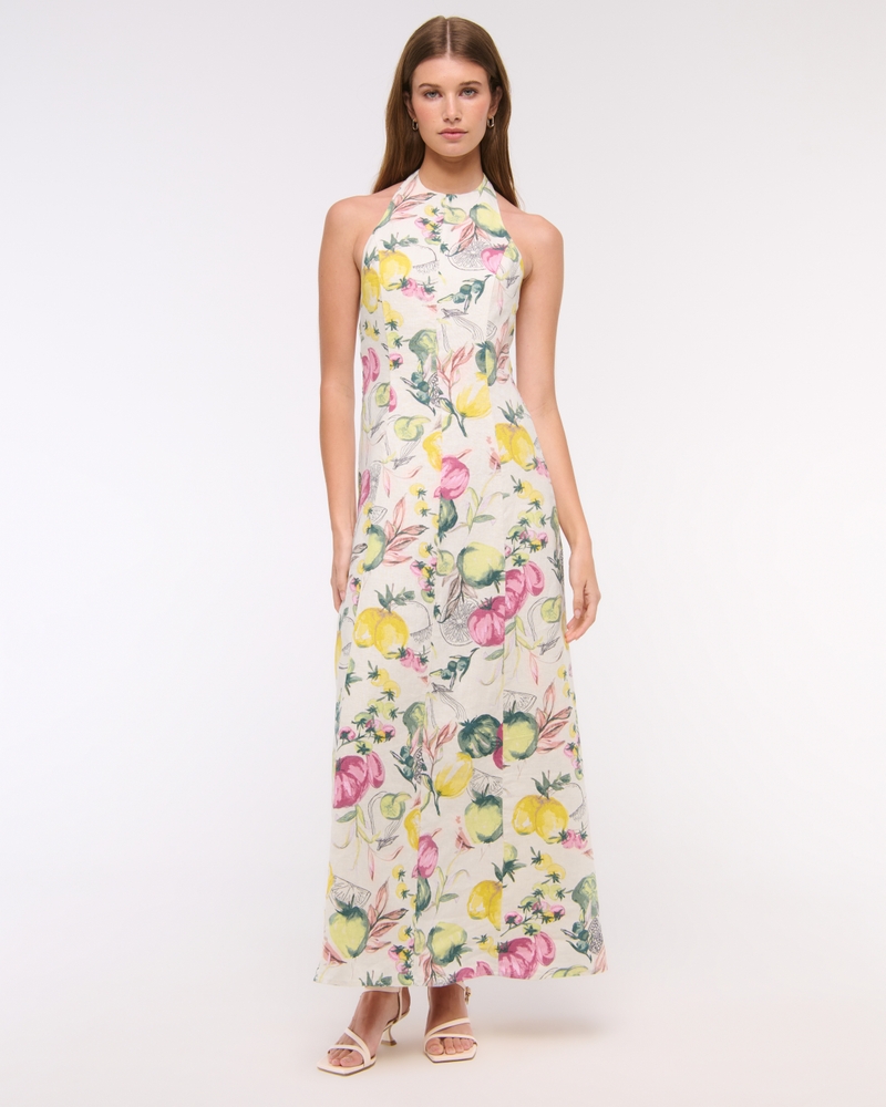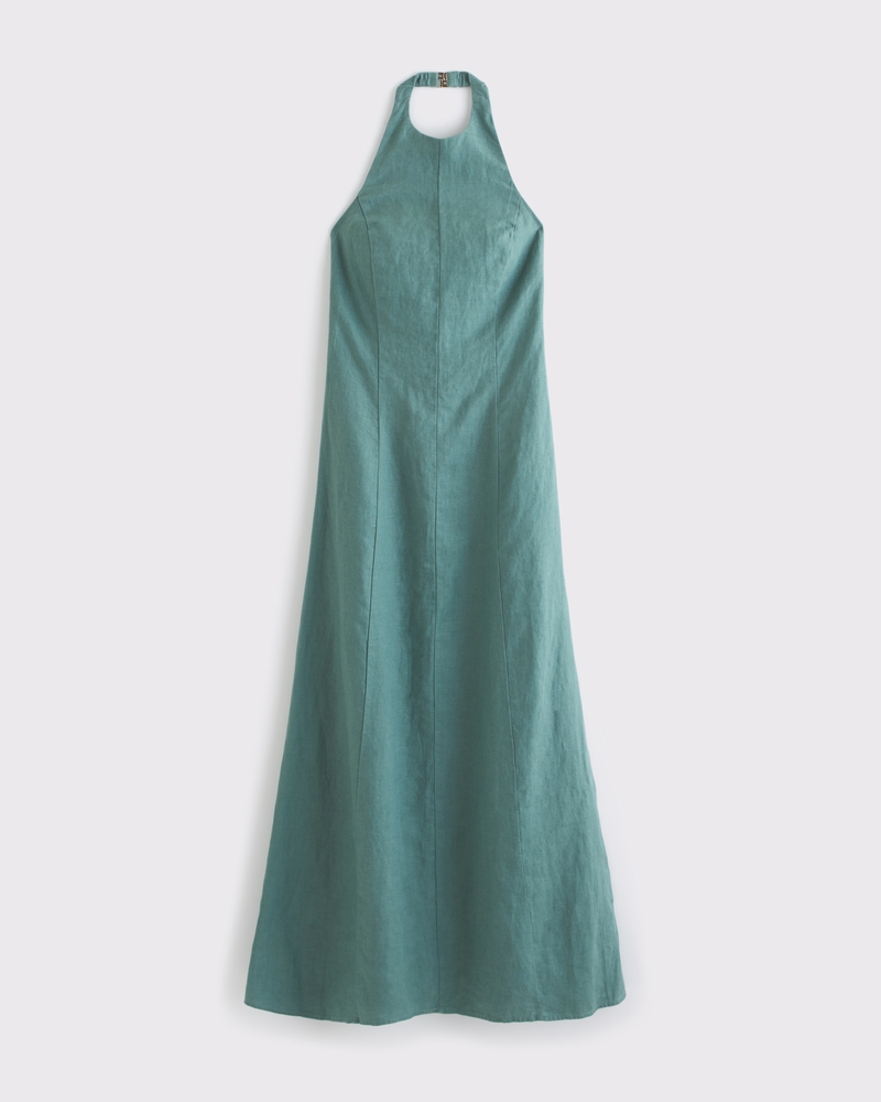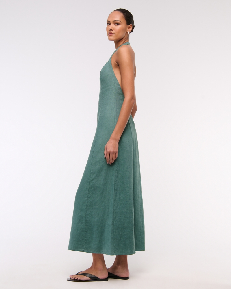 Flattering maxi dress in our elevated 100% linen fabric, featuring open-back detail, halter neckline and on-trend hardware clasp. Imported.