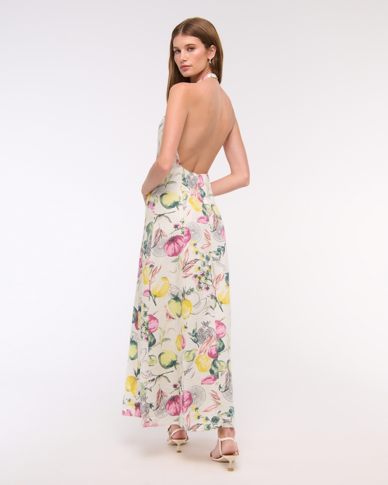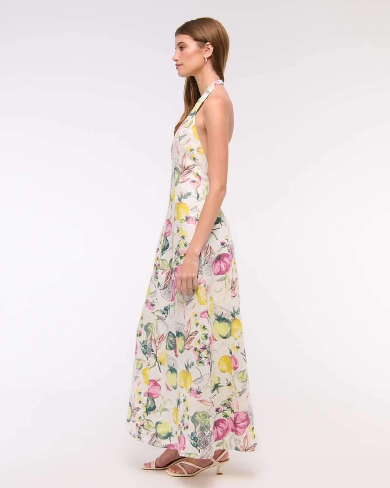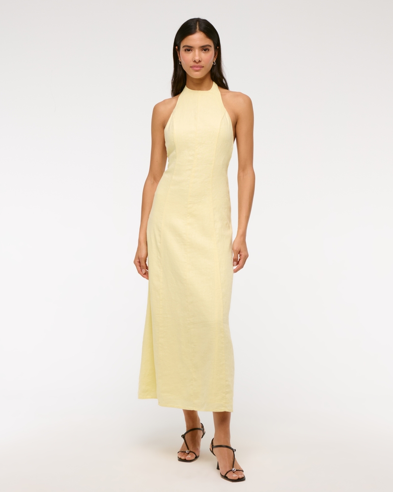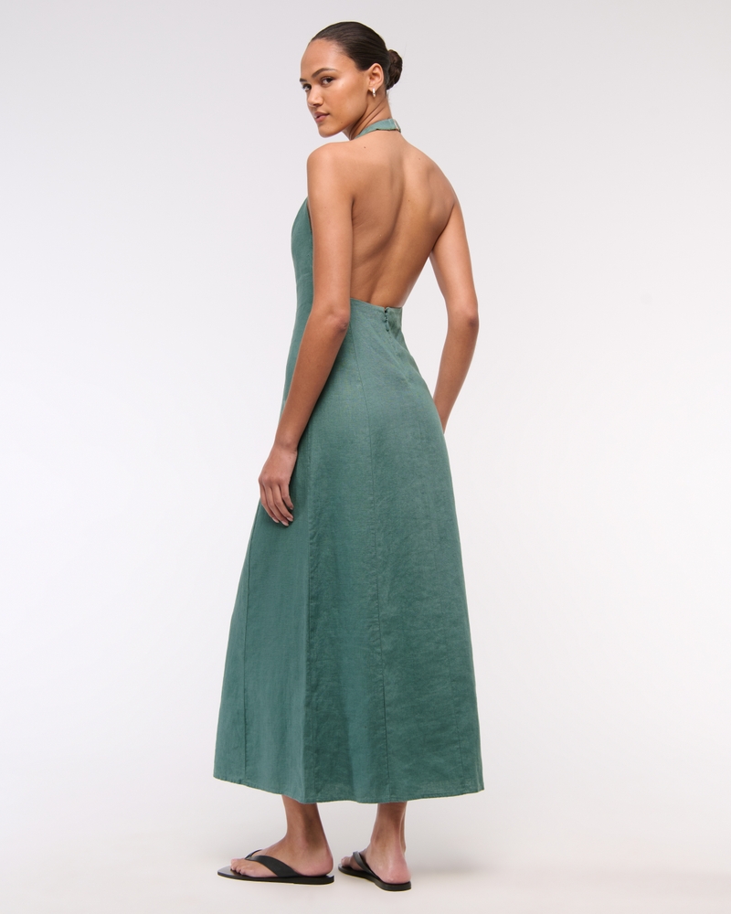 Flattering maxi dress in our elevated 100% linen fabric, featuring open-back detail, halter neckline and on-trend hardware clasp. Imported.