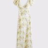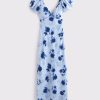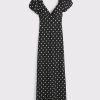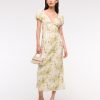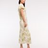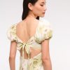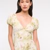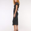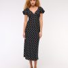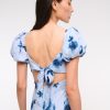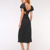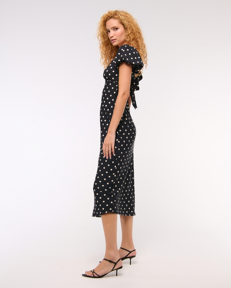 Flattering short-sleeve midi dress is our soft faux silk fabric, featuring an on-trend tie back detail, v-neckline and dainty puff sleeves.