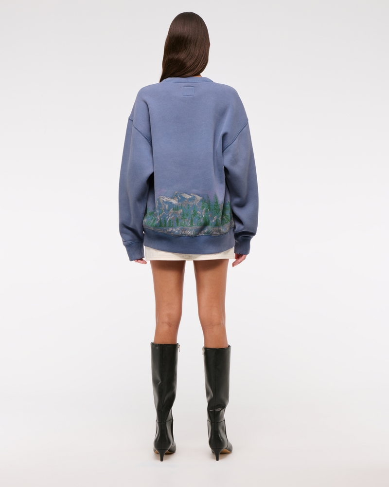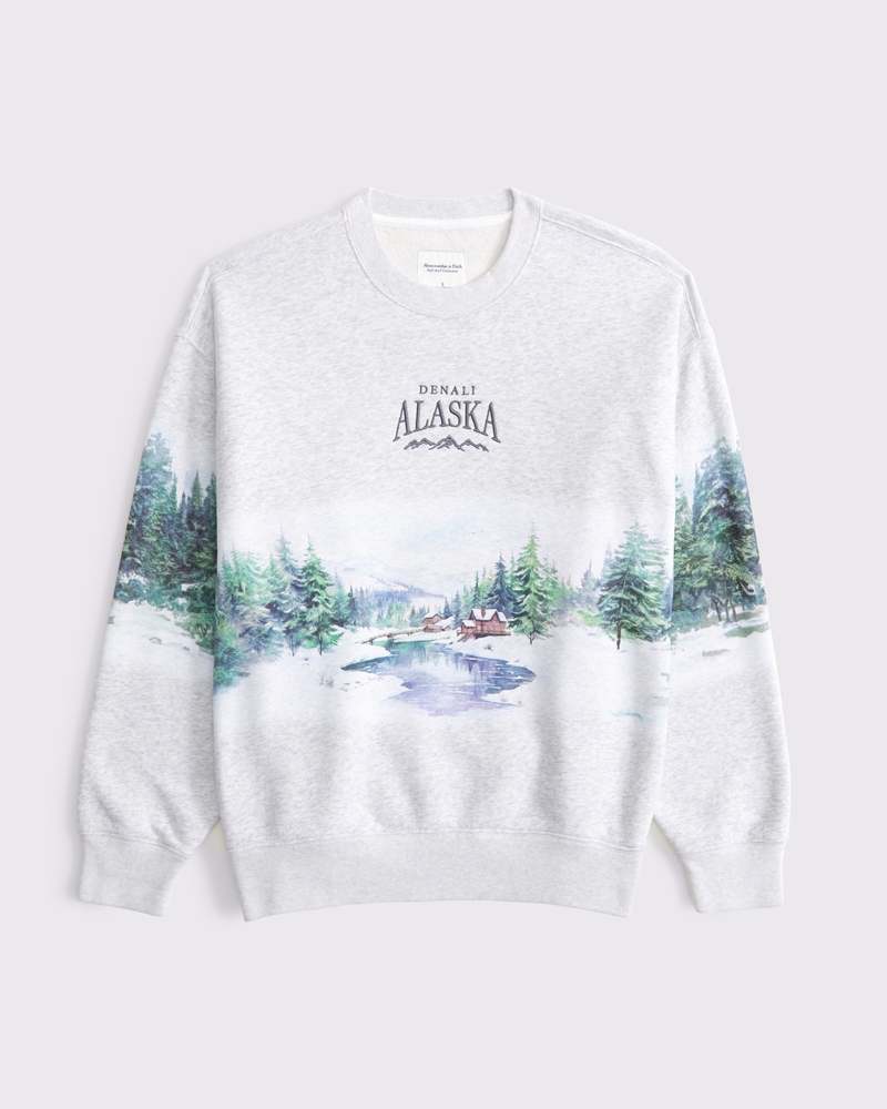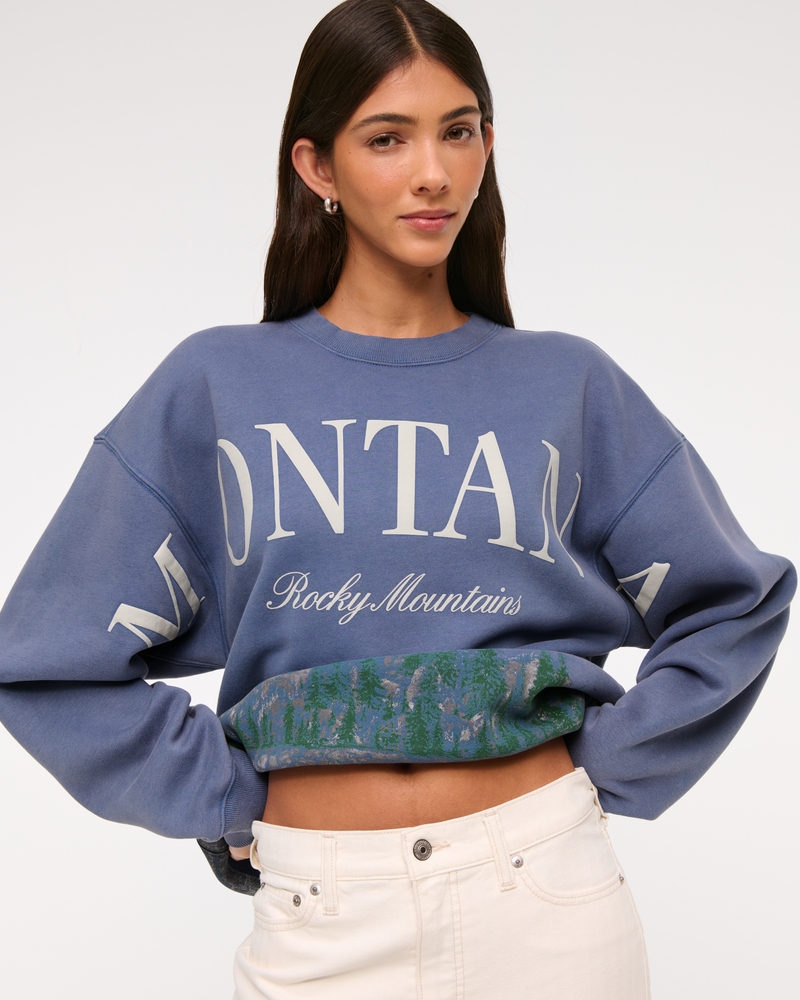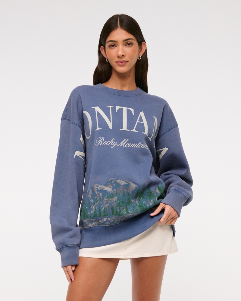 Comfy sweatshirt in our Soft A&F MAX heavyweight fabric and legging-friendly length, featuring a relaxed chest width, scenic Montana Rocky Mountains wrap-around graphic detail, crew neckline and banded hem and cuffs. Imported.
