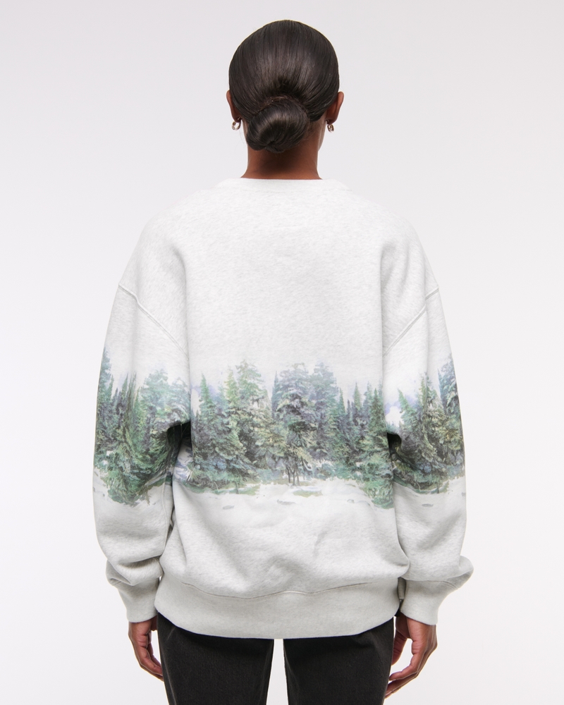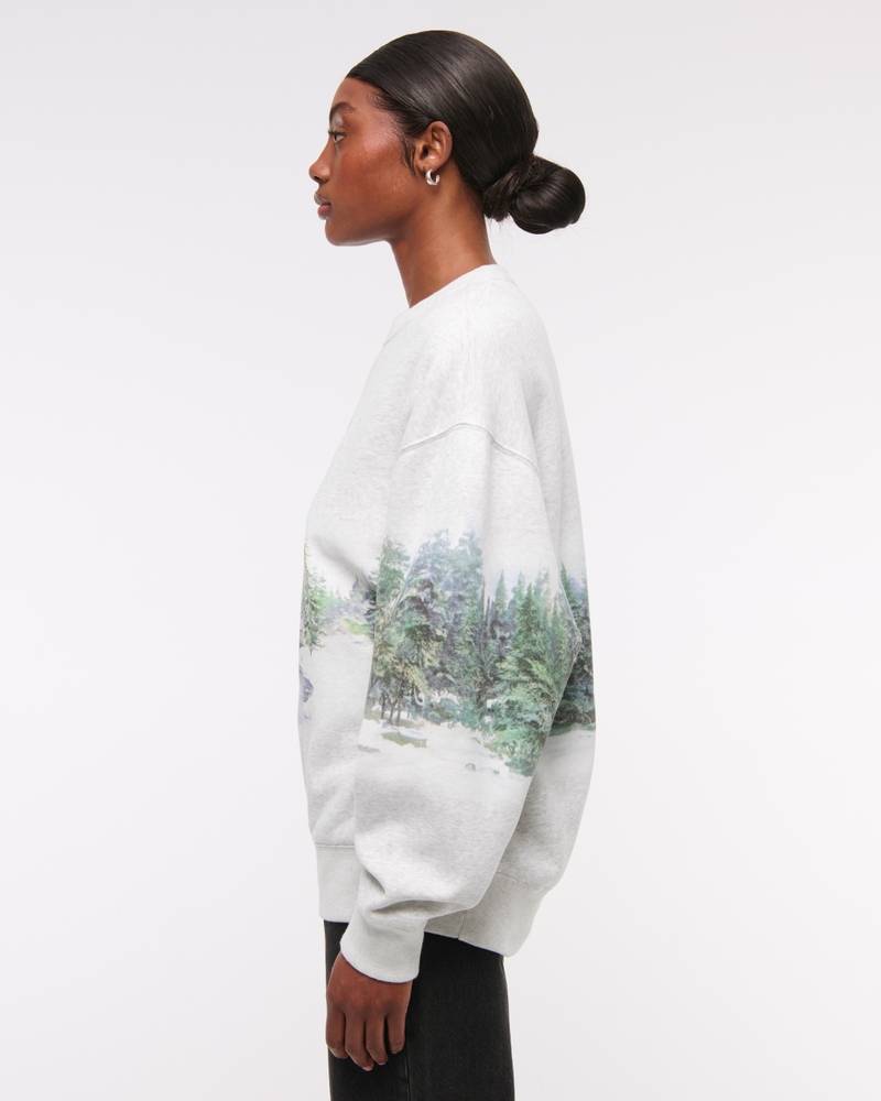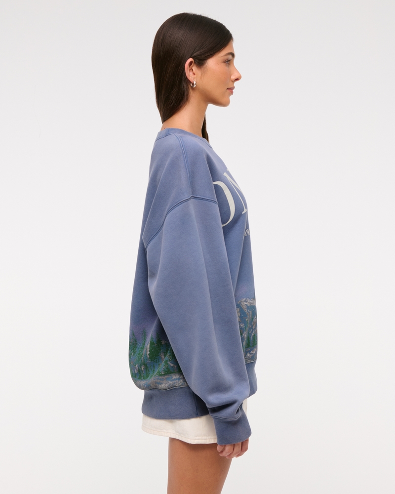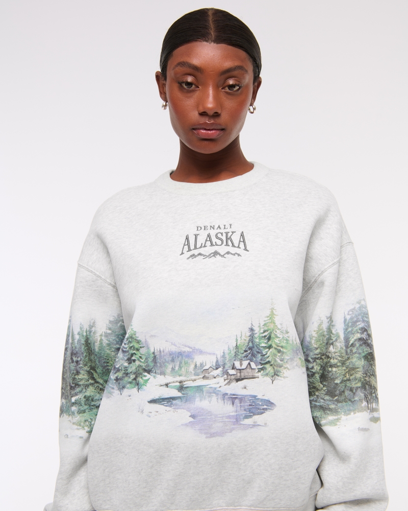 Comfy sweatshirt in our Soft A&F MAX heavyweight fabric and legging-friendly length, featuring a relaxed chest width, scenic Montana Rocky Mountains wrap-around graphic detail, crew neckline and banded hem and cuffs. Imported.