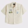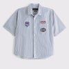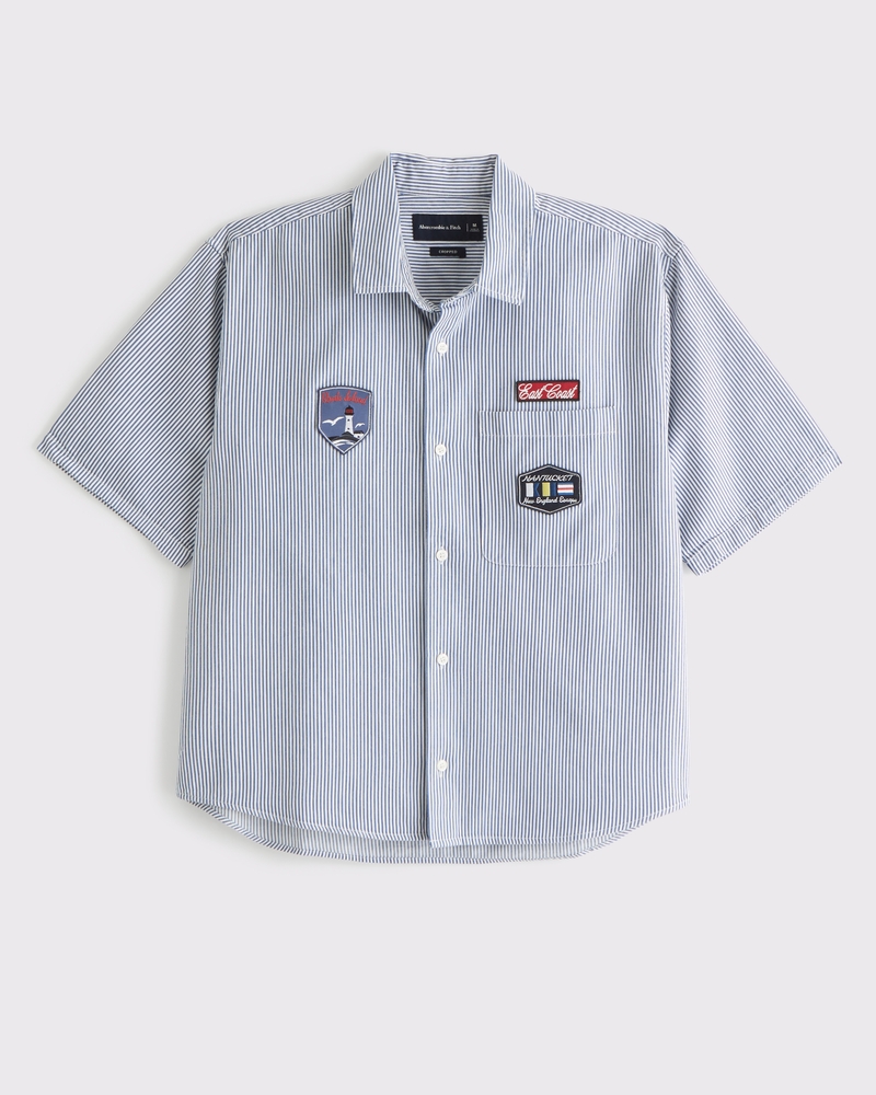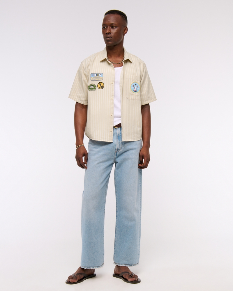 Short Sleeve Cropped Graphic Workwear Button-Up Shirt