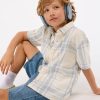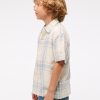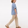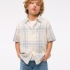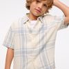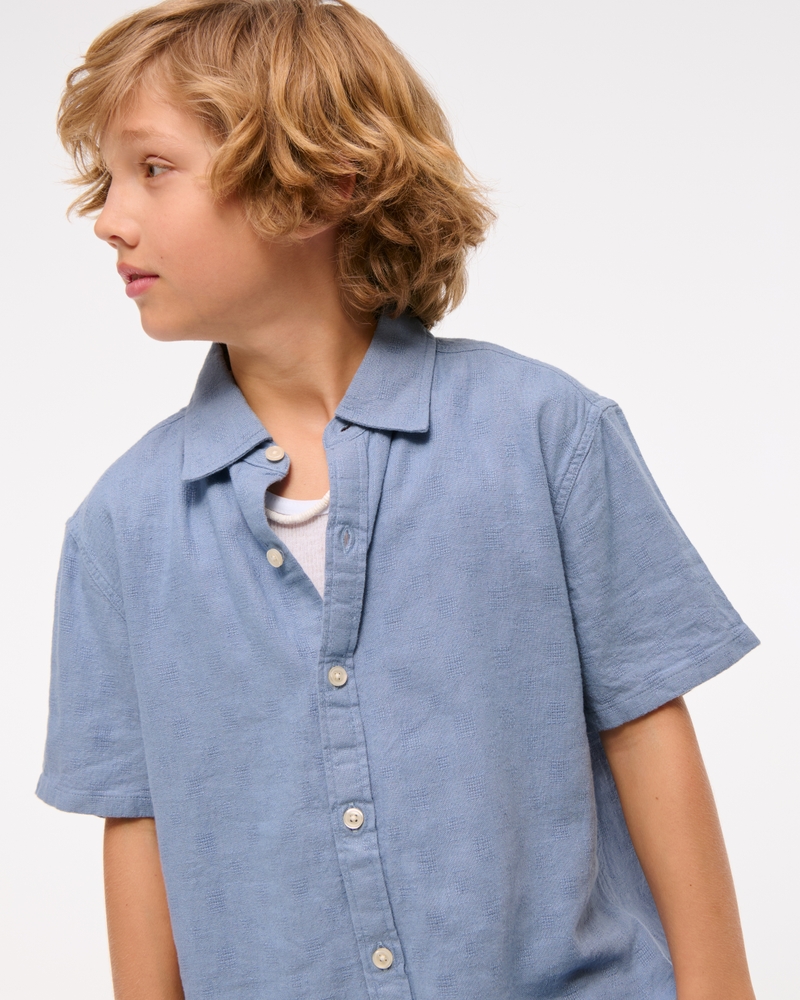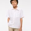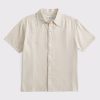 Cool and preppy short-sleeve button-up shirt in a soft linen-blend fabric, with classic collar and logo tag at hem. Imported.