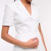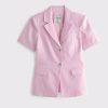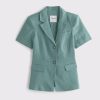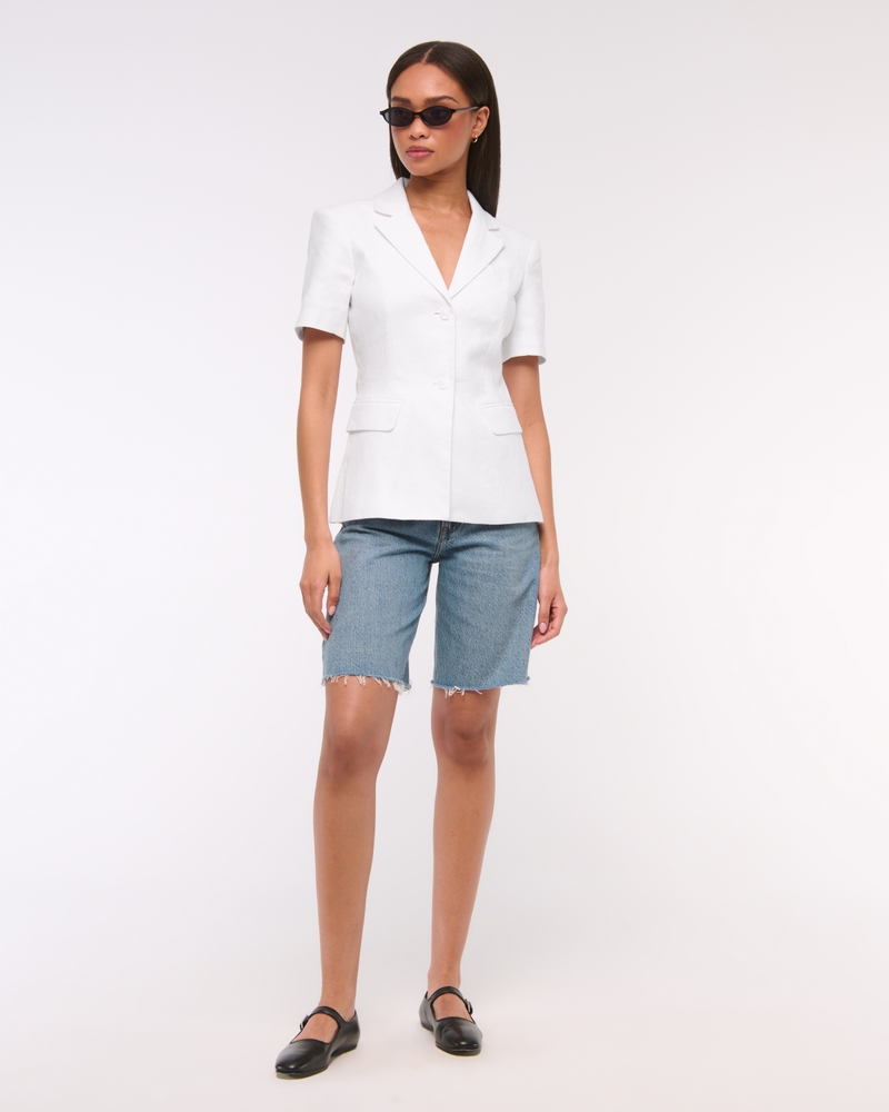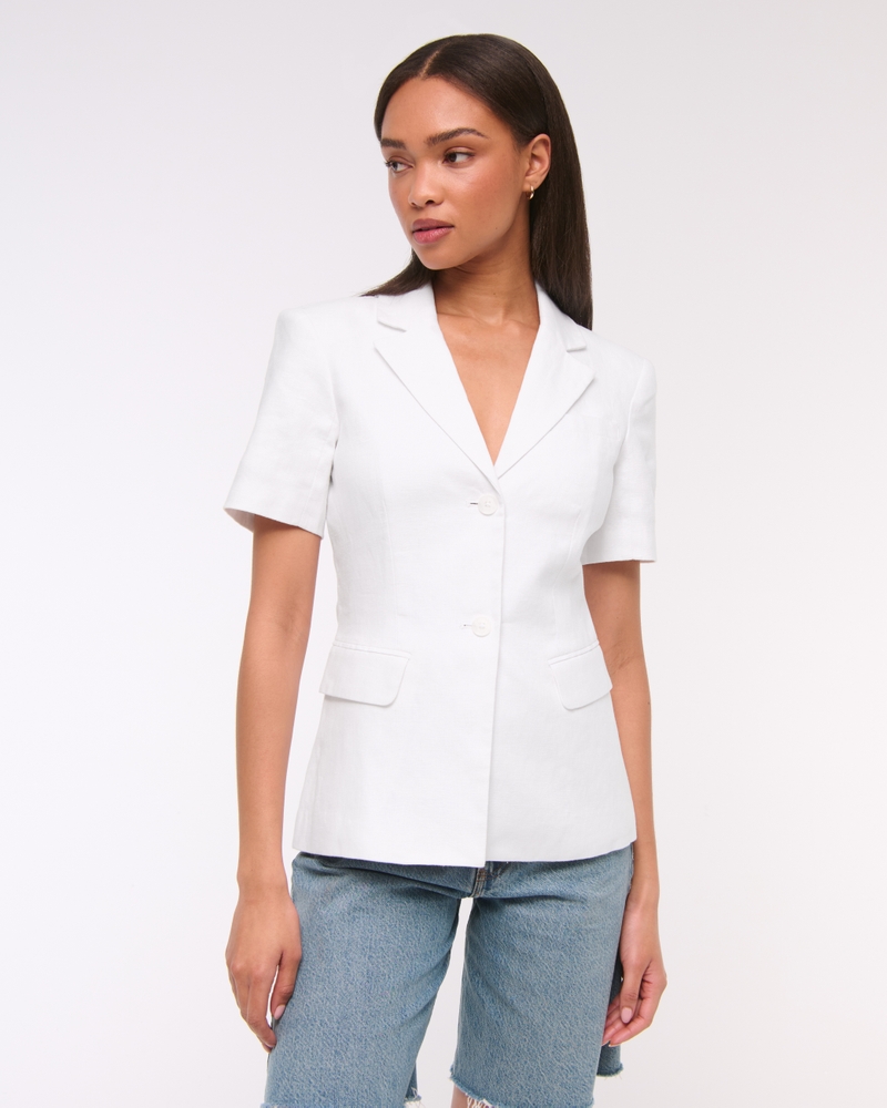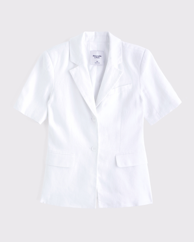 Our new blazer in a soft 100% linen fabric and skimming silhouette, featuring on-trend short sleeves, center button closure and front pockets. Imported.